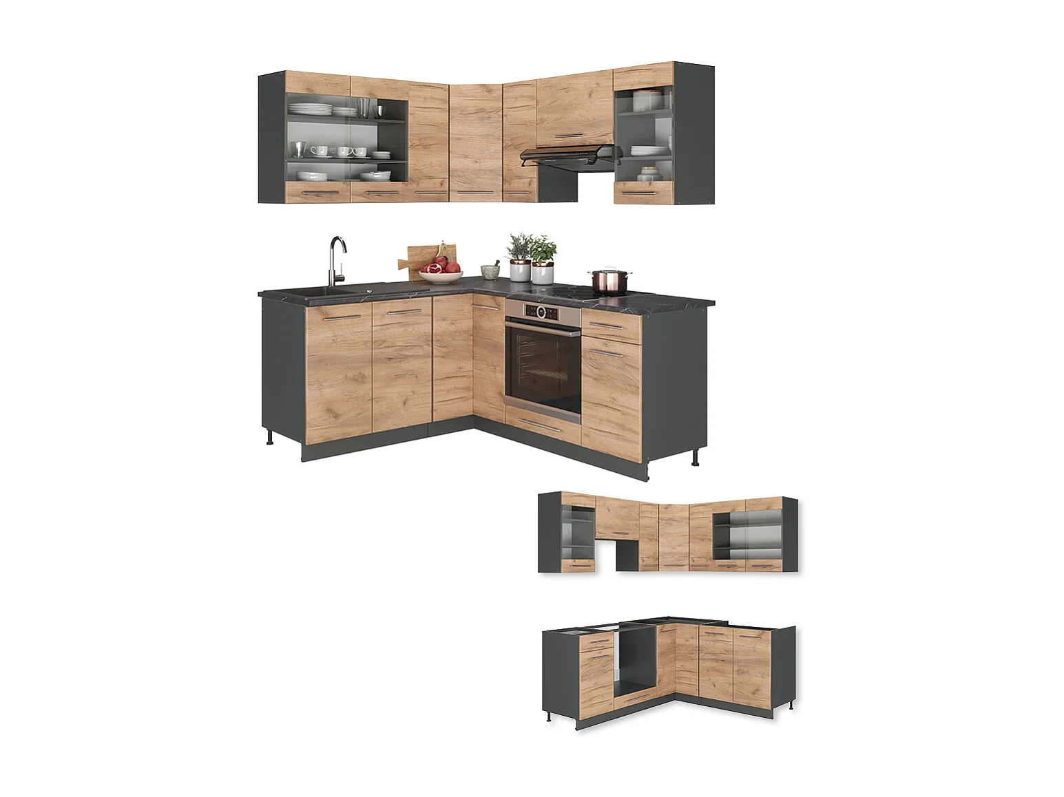 Cuisine en angle chêne doré/anthracite 190x60x81.6 fame-line