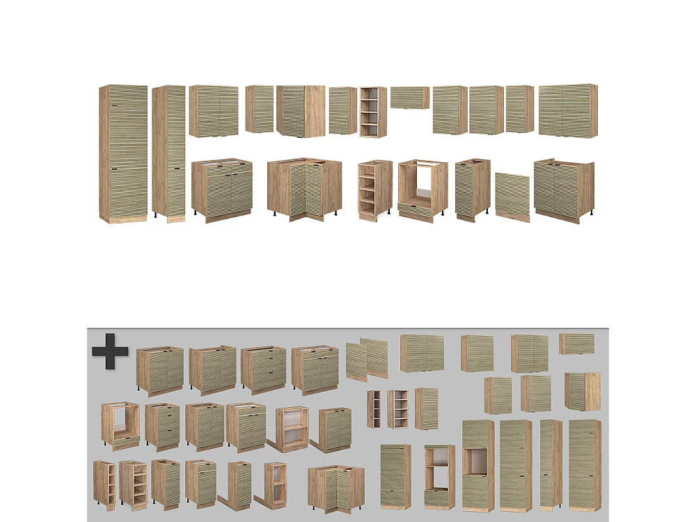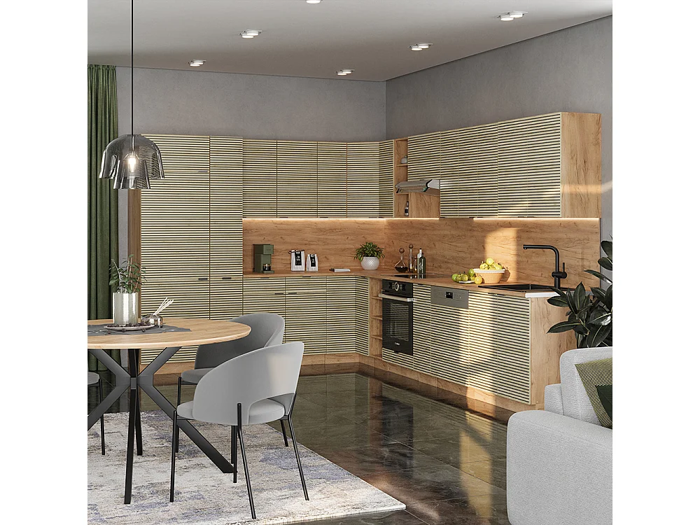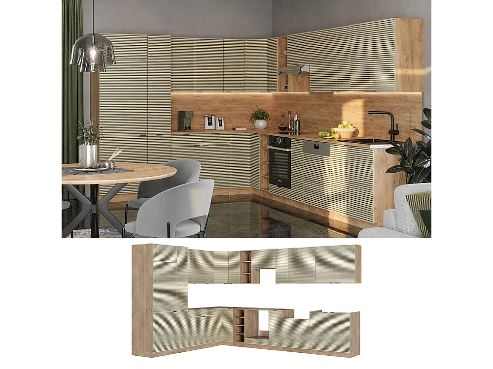 Cuisine en angle chêne lambris/chêne doré 347x46x81.6 fame-line
