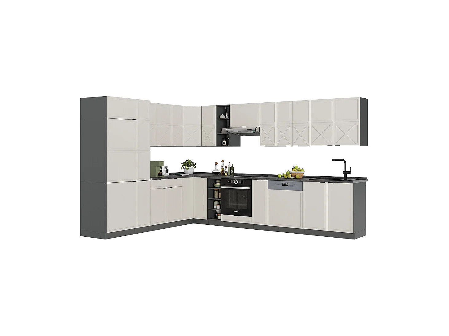 Cuisine en angle grisbeige/anthracite 347x60x81.6 fame-line