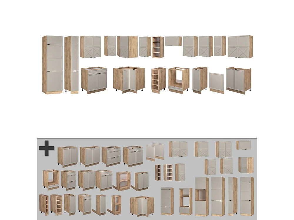 Cuisine en angle grisbeige/chêne doré 347x60x81.6 fame-line