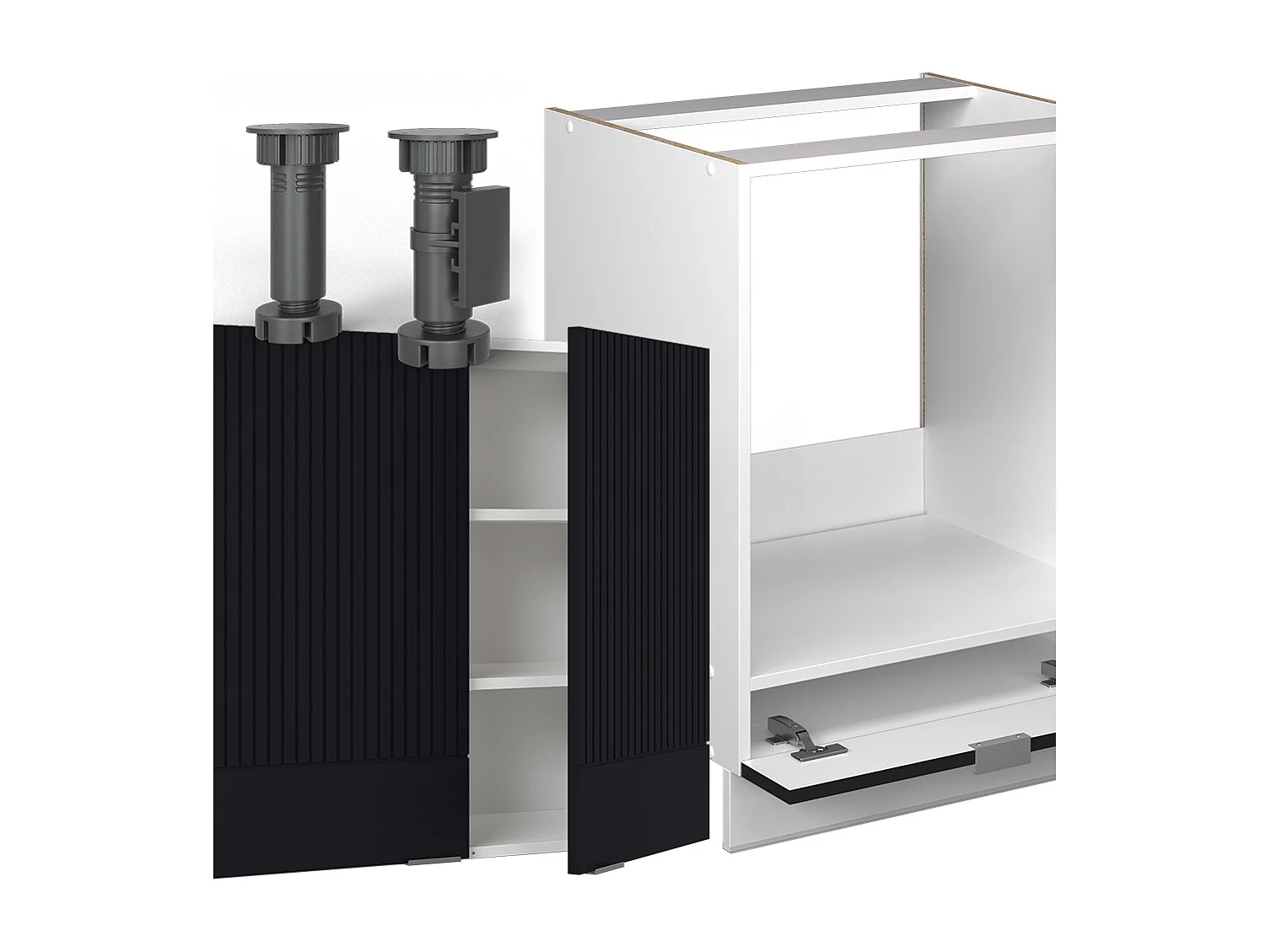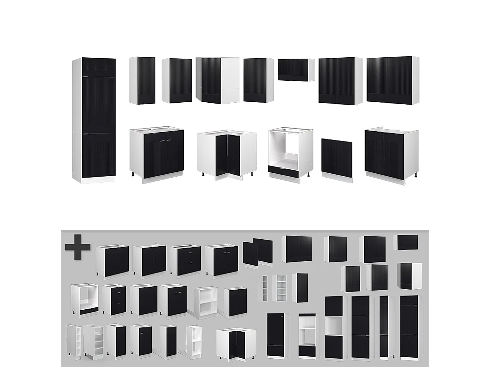 Cuisine en angle noir rayé/blanc 287x60x81.6 fame-line