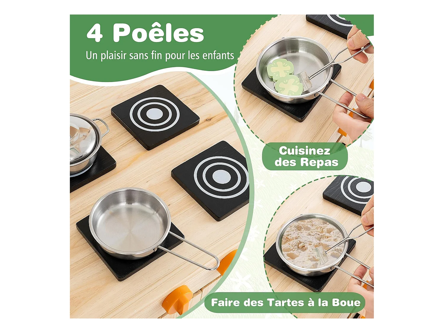 Cuisine pour Enfants, SucceBuy Cuisine en Bois de Boue, Ensemble de Cuisine de Jeu d'Extérieur pour Enfants, Jouet de Jeu de Simulation
