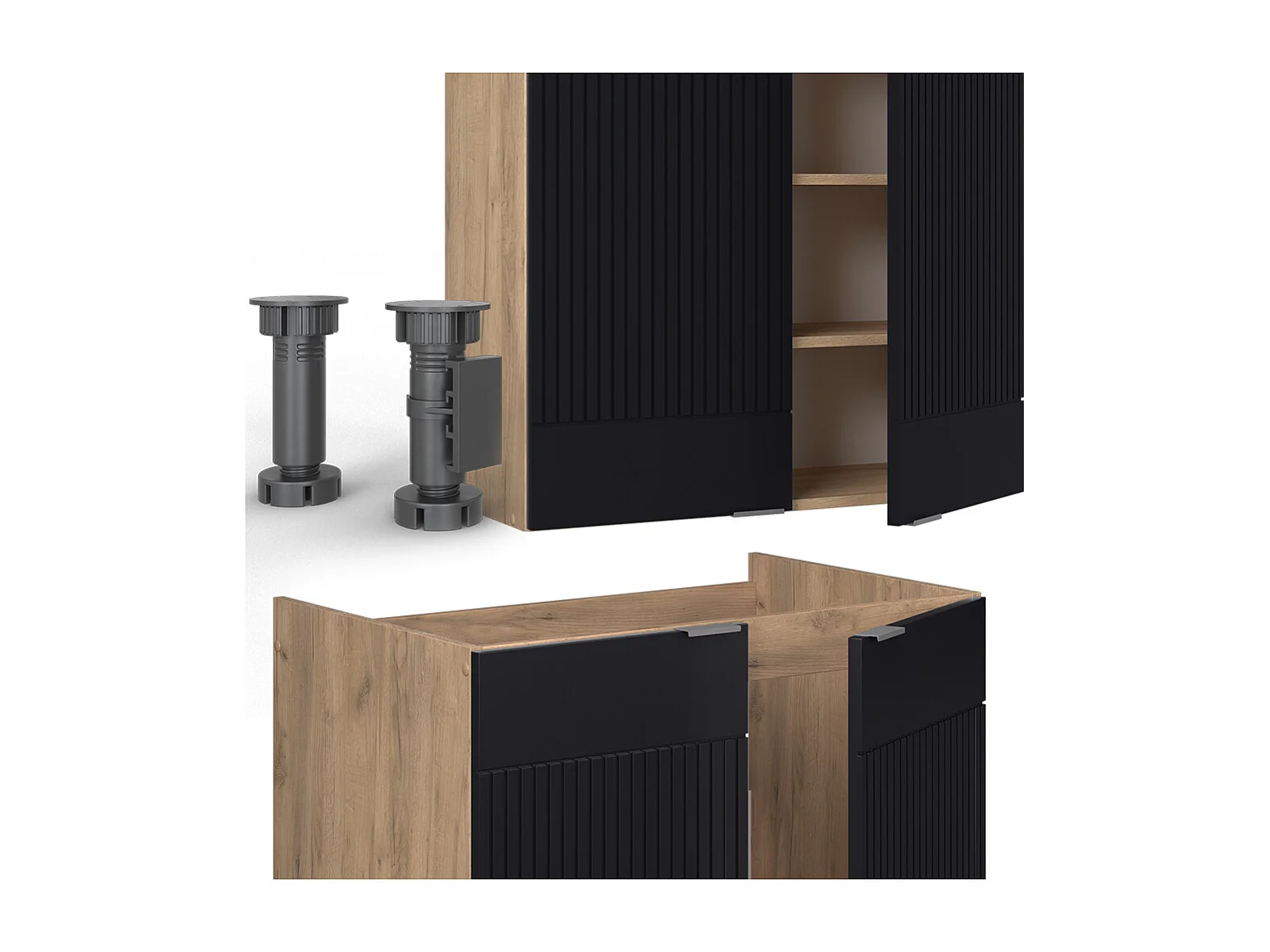 Cuisine noir rayé/chêne doré 200x60x81.6 fame-line