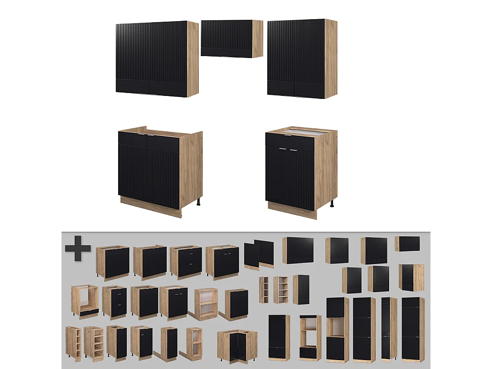 Cuisine noir rayé/chêne doré 200x60x81.6 fame-line