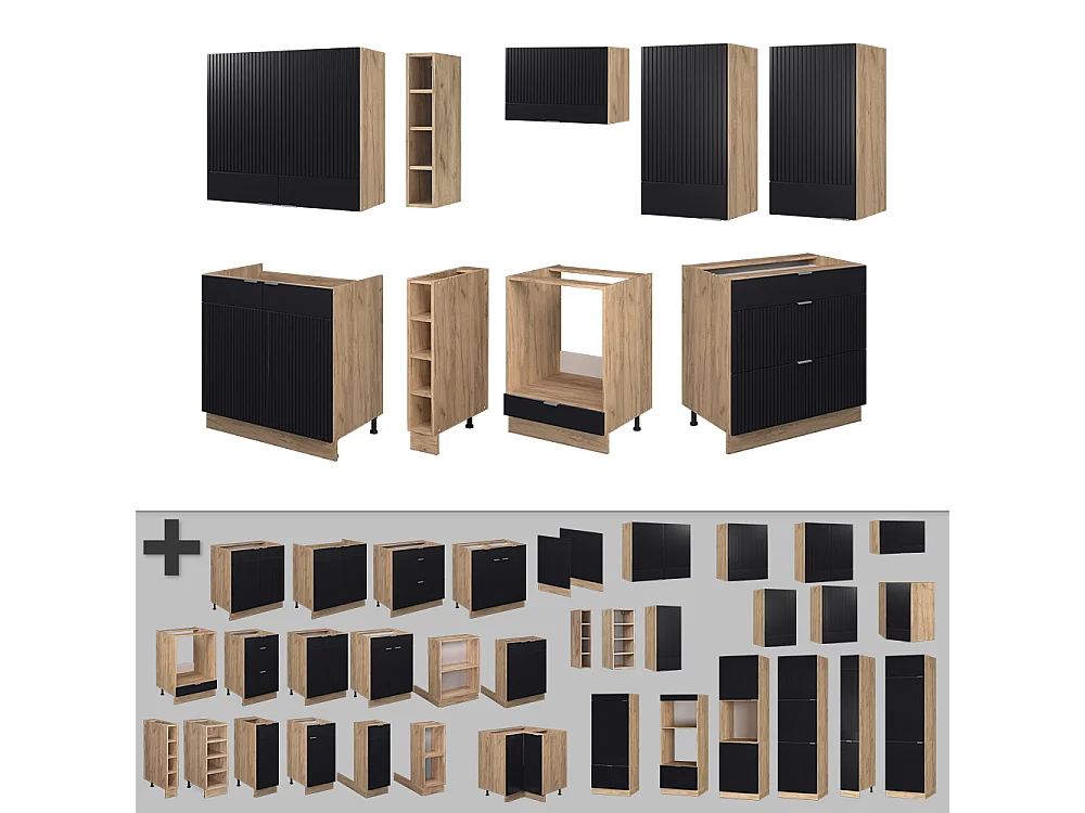 Cuisine noir rayé/chêne doré 235x46x81.6 fame-line