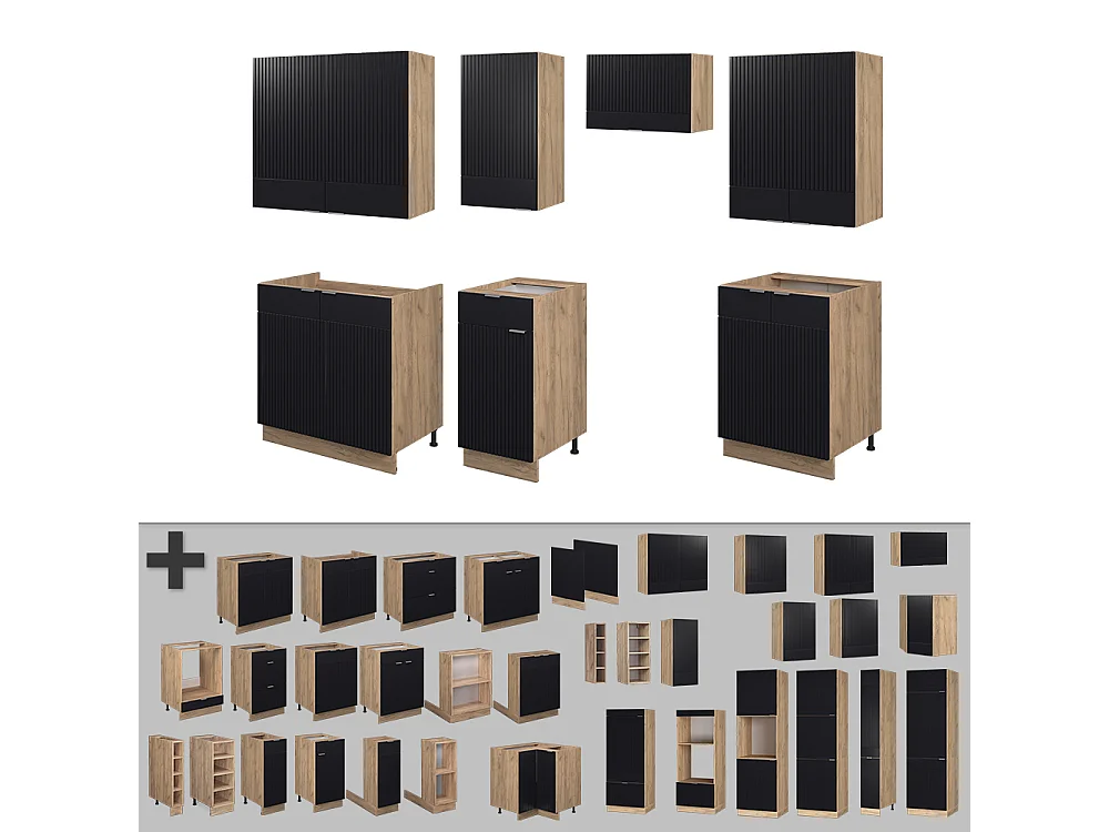 Cuisine noir rayé/chêne doré 240x46x81.6 fame-line