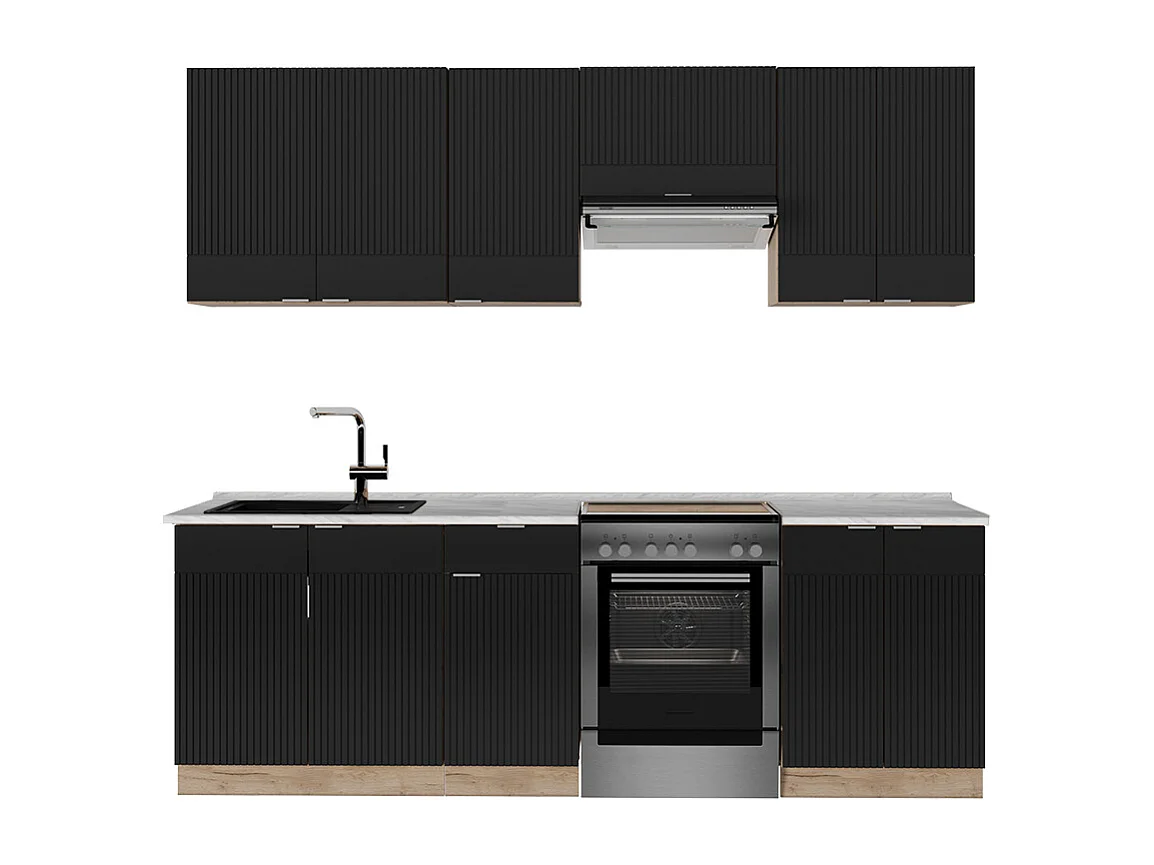 Cuisine noir rayé/chêne doré 240x60x81.6 fame-line