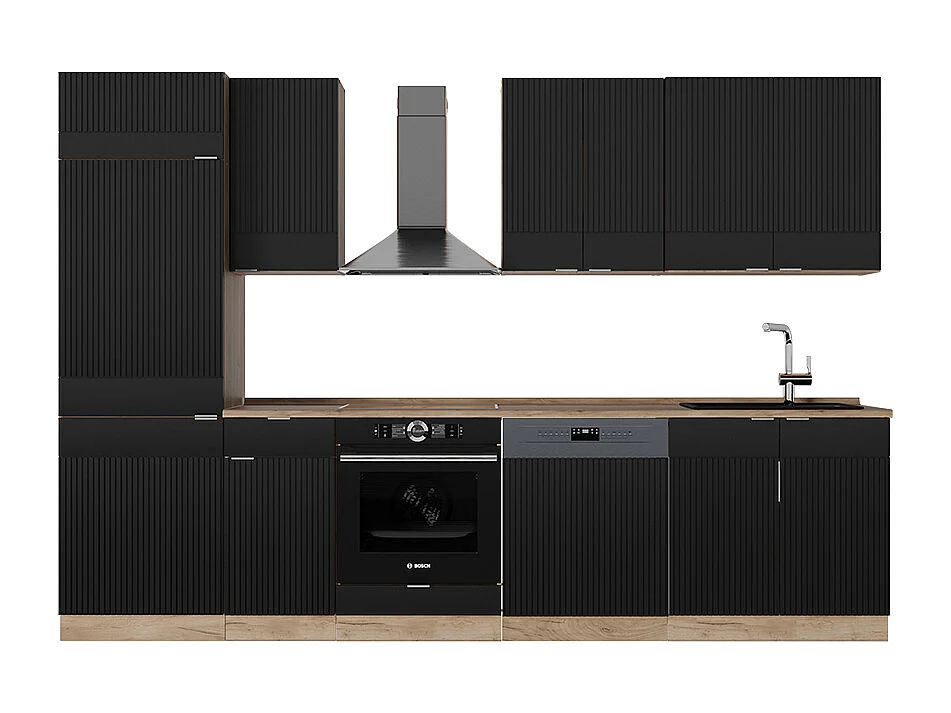 Cuisine noir rayé/chêne doré 300x60x81.6 fame-line