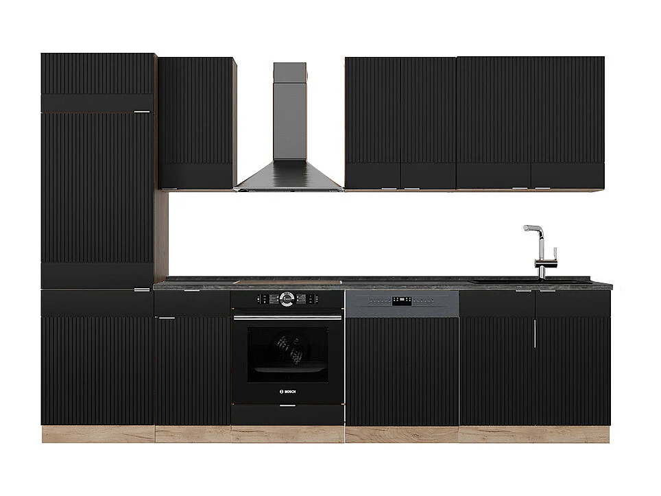 Cuisine noir rayé/chêne doré 300x60x81.6 fame-line