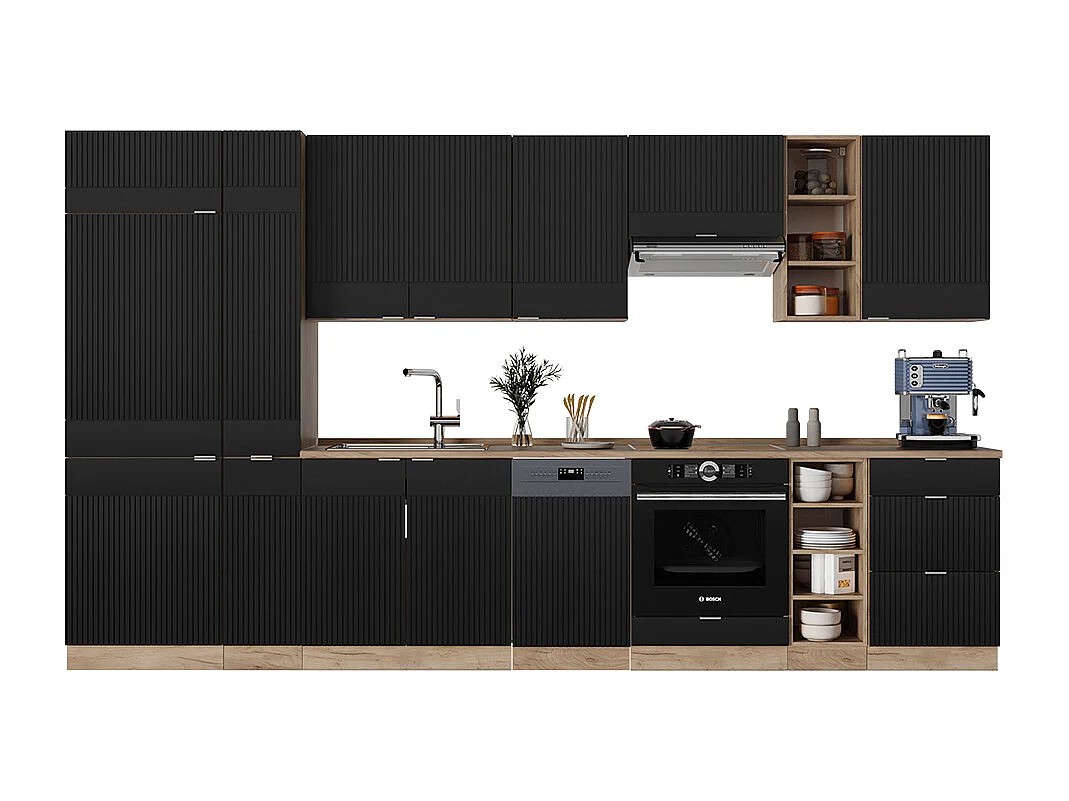 Cuisine noir rayé/chêne doré 355x60x81.6 fame-line