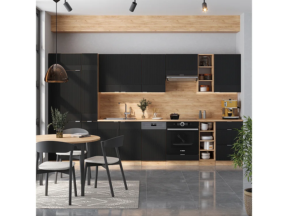 Cuisine noir rayé/chêne doré 355x60x81.6 fame-line