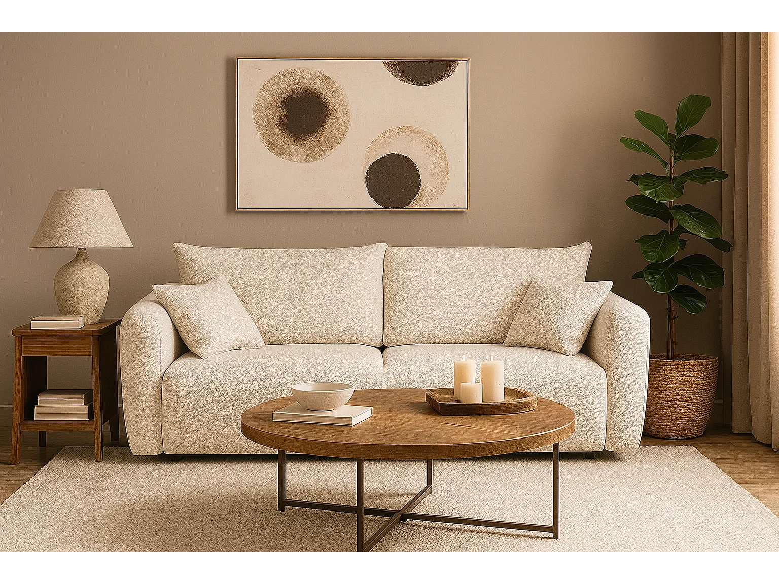 DALLAS – Canapé 3 places convertible 238x90 cm, couchage 140x196 cm, tissu Raven 5 crème
