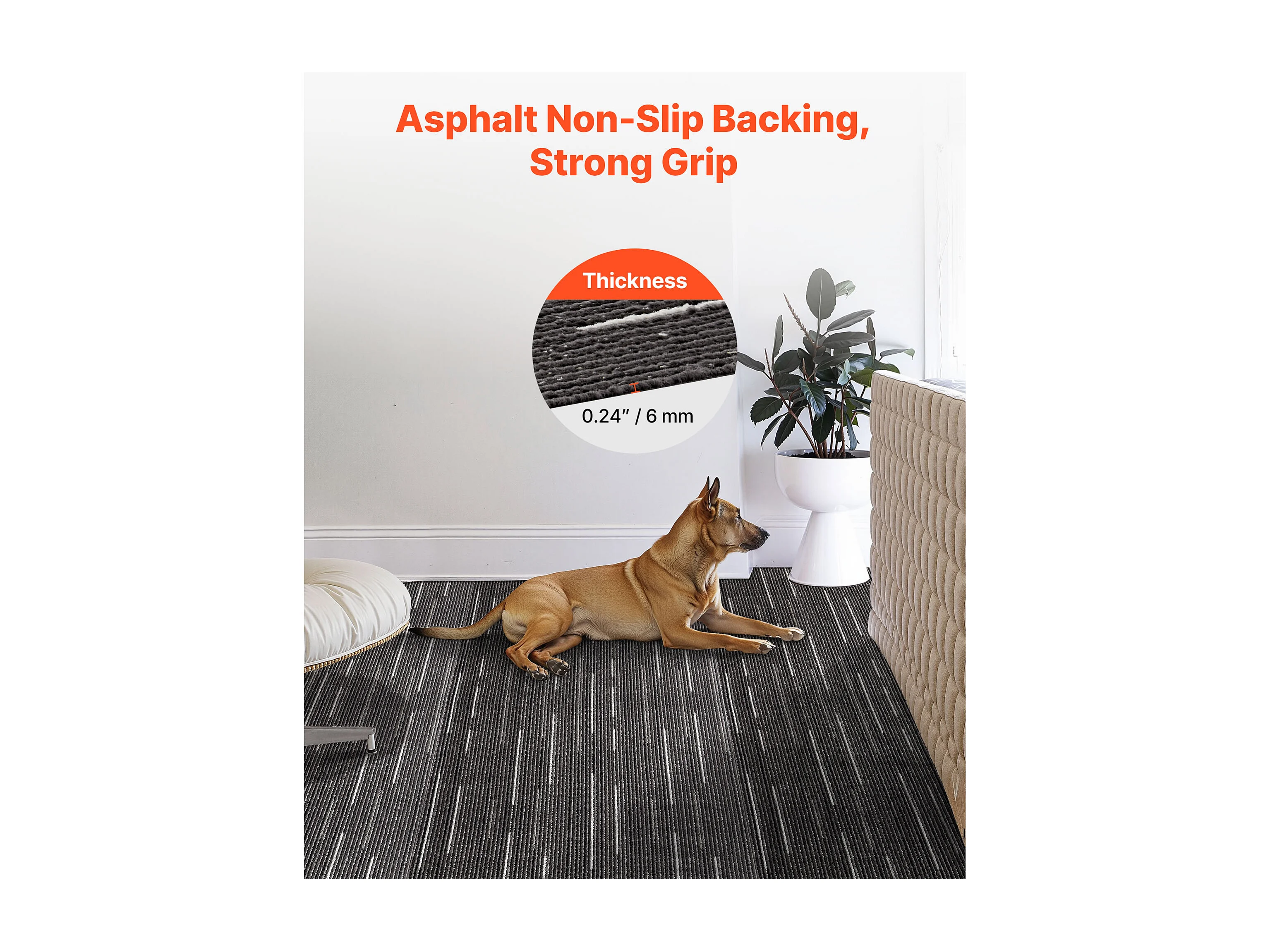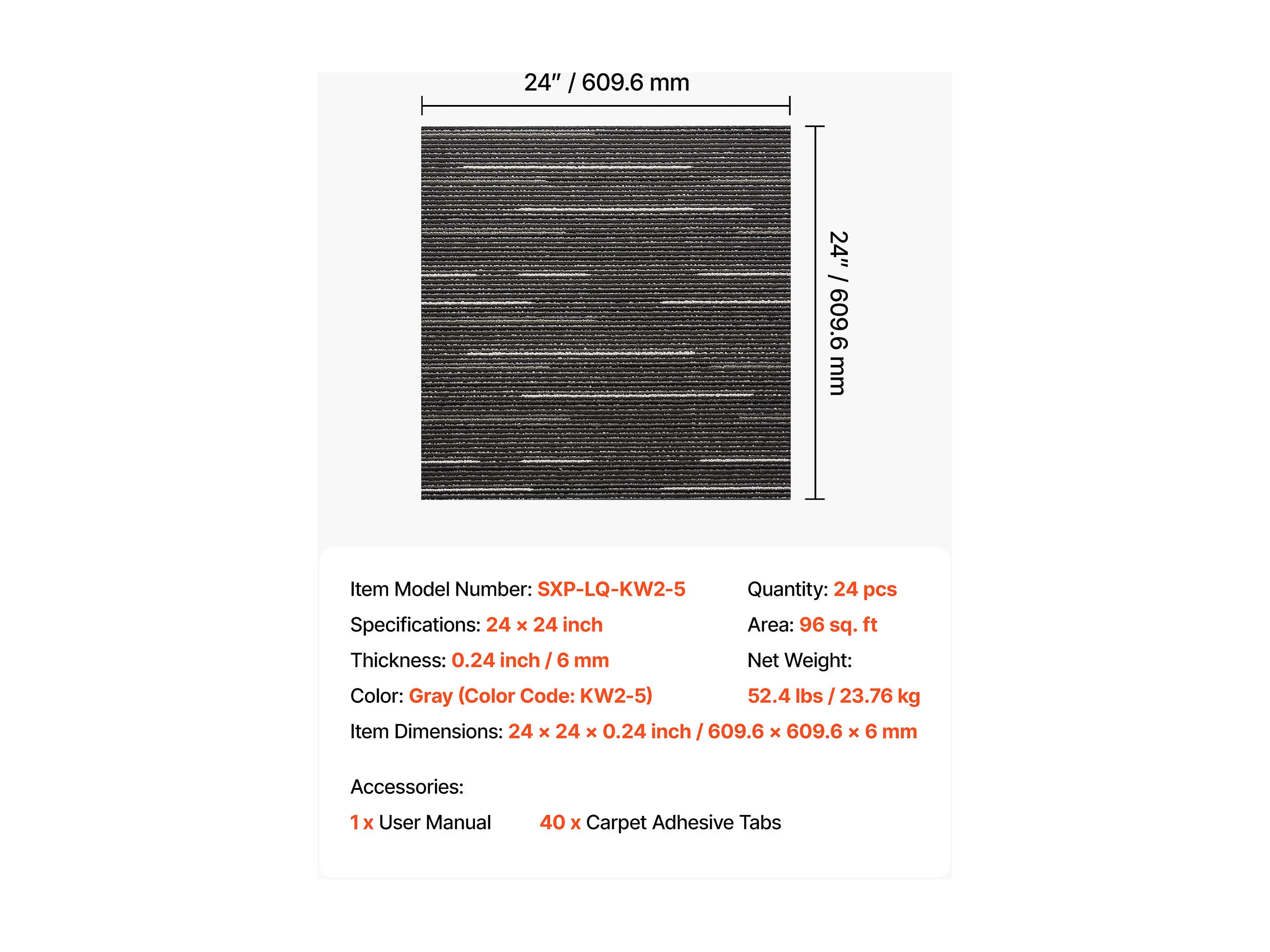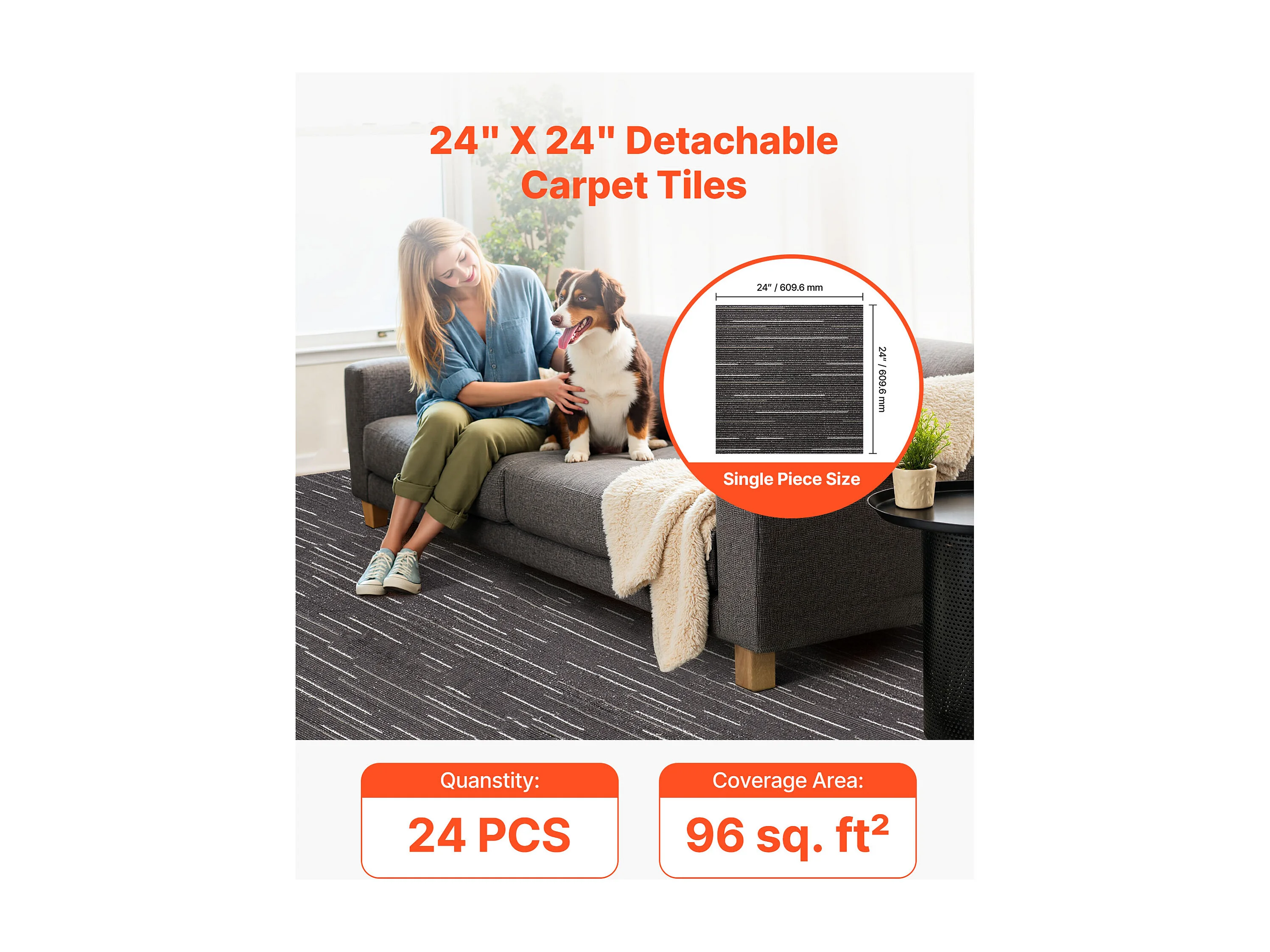 Dalle de Moquette Réutilisable SucceBuy, 61x61 cm, Lot de 24, Couverture 8,9 ㎡, Épaisseur 6 mm, à Poils Ras, Revêtement de Sol Doux Modulaire Carré pour Salon