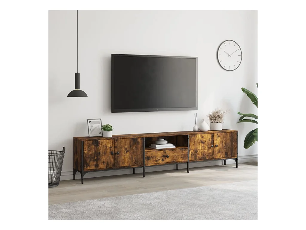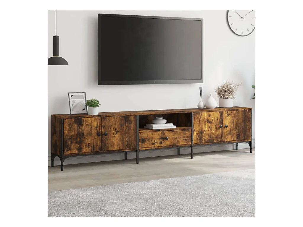Chiloquin Meuble TV chêne fumé 200x30x50 cm bois d'ingénierie et métal