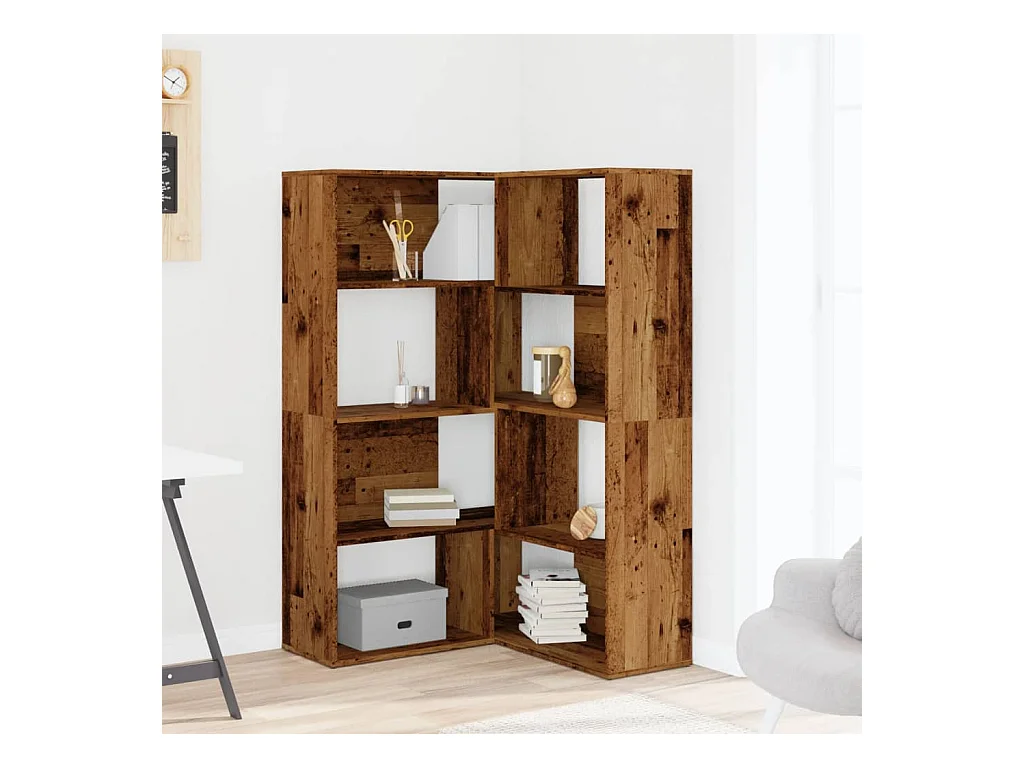 Damir Bibliothèque d'angle à 4 niveaux vieux bois bois d'ingénierie