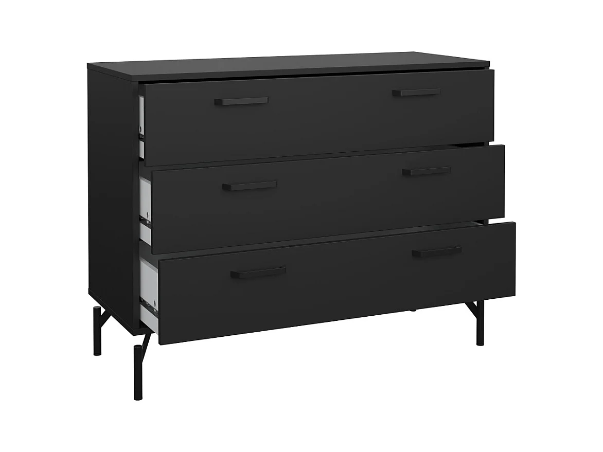 Commode 6 tiroirs noir mat pieds métal L139 cm - BORA