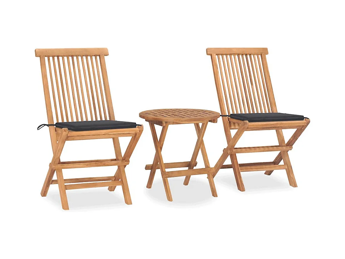Danaë Ensemble à manger d'extérieur pliable avec coussin 3 pcs Teck