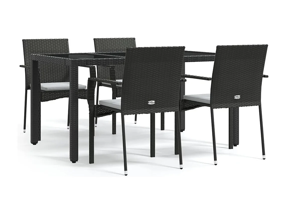 Daniela Patricia Ensemble à manger de jardin coussins 5pcs Noir Résine tressée