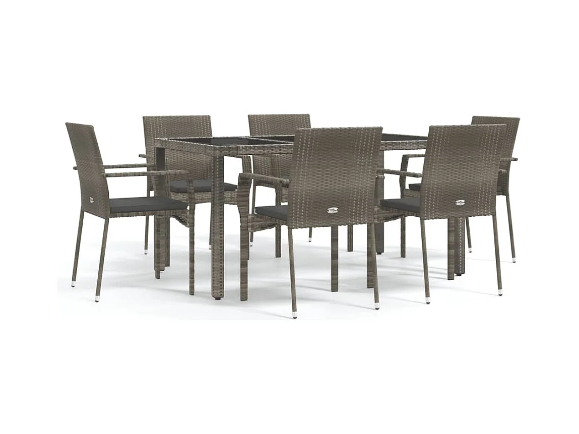 Tyron Ensemble à manger jardin et coussins 7 pcs gris rotin