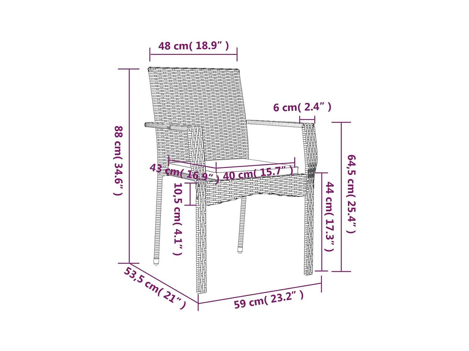 Daniela Patricia Ensemble à manger jardin et coussins 7 pcs gris rotin