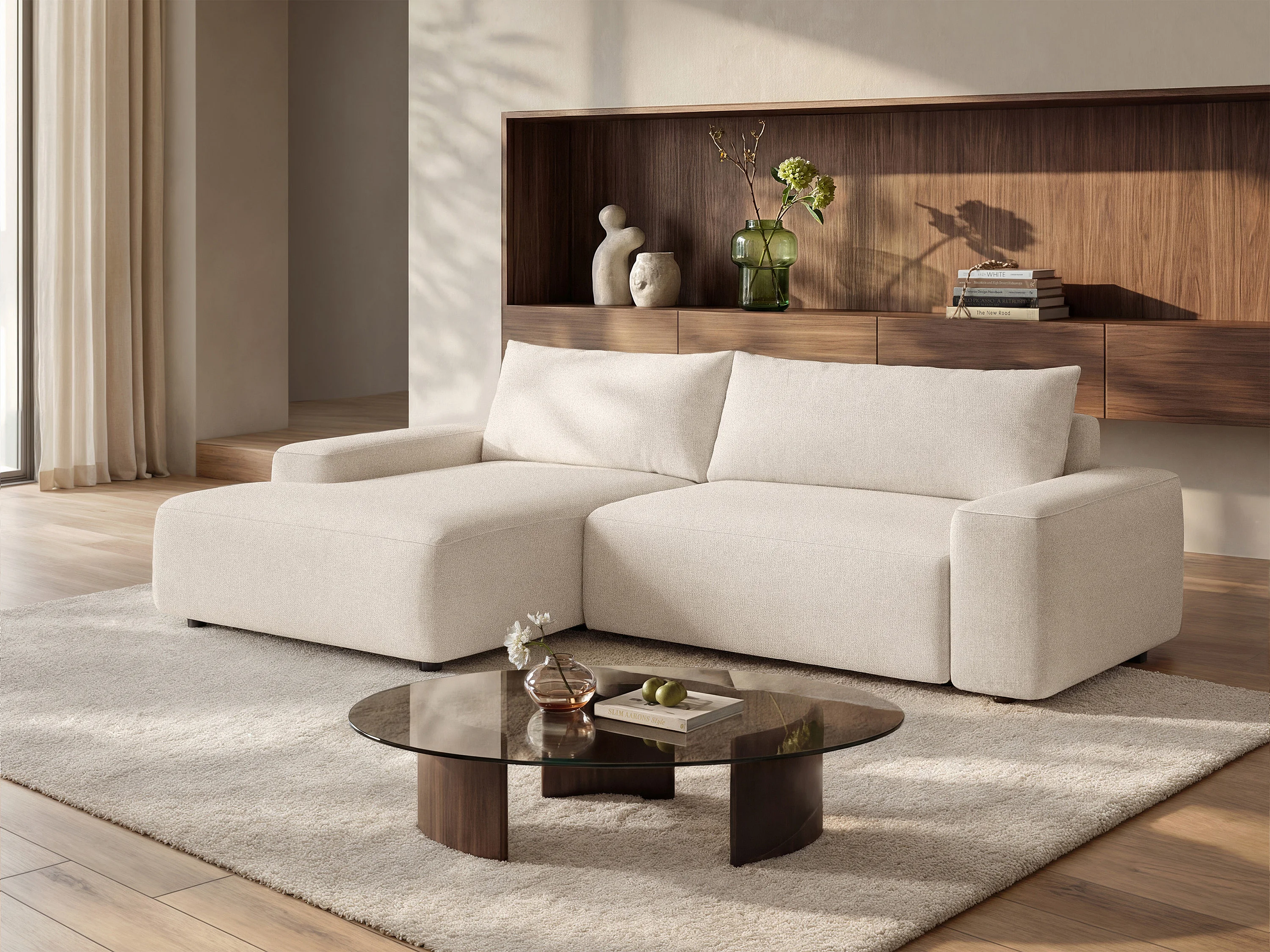 Canapé d'angle gauche convertible en tissu texturé beige DAVISO