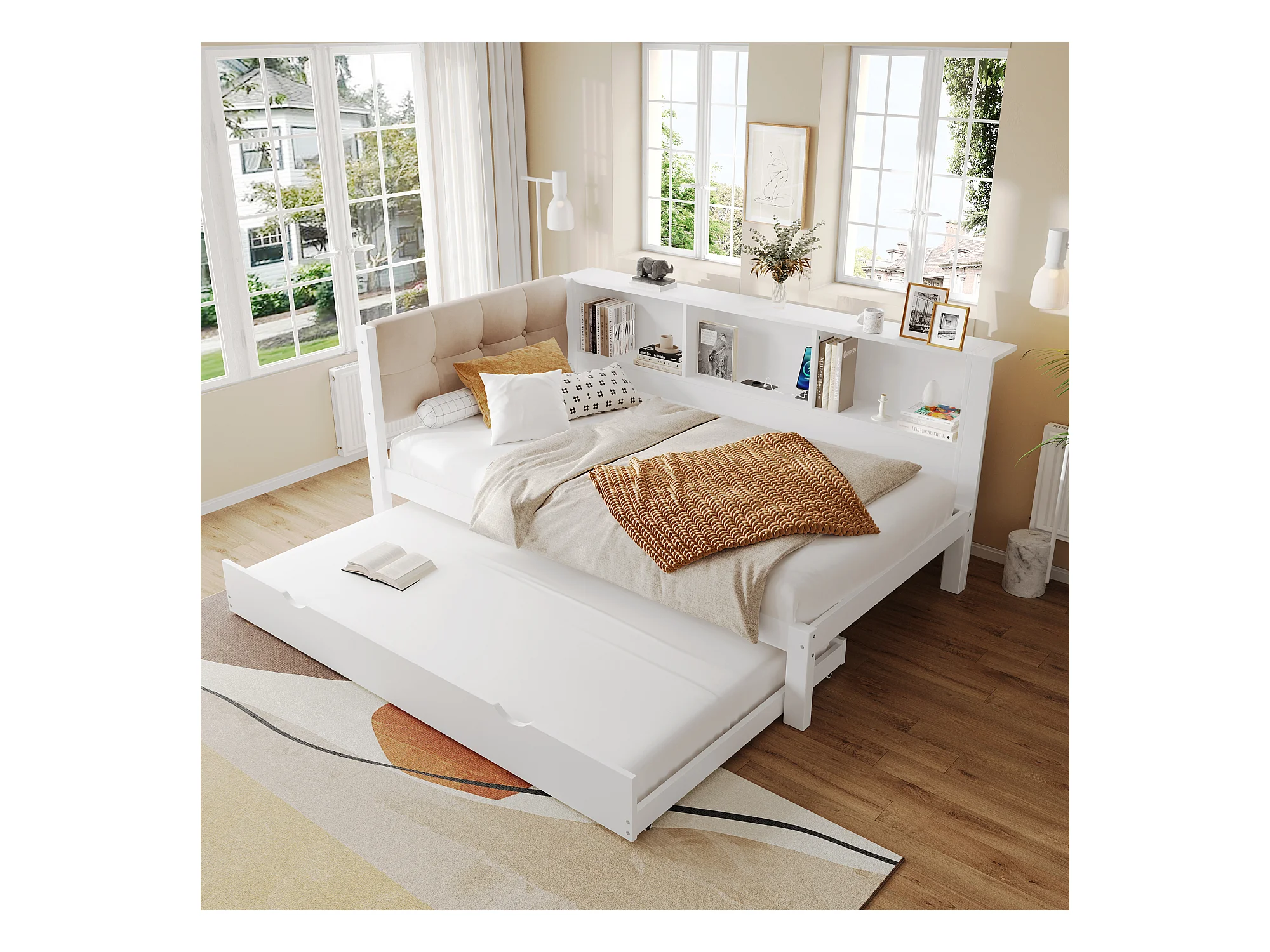 Daybett, Polsterbett mit Ziehbett, Samt, Weiß (90x200 cm)