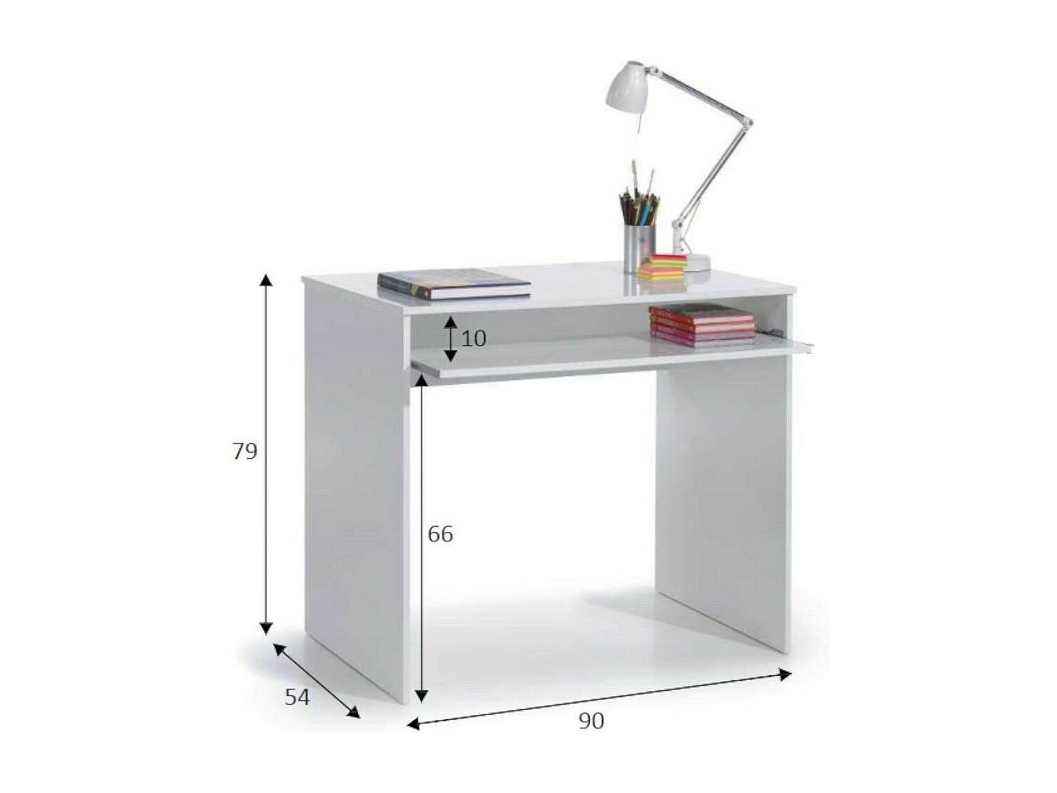 Dayton Desk, Bureau avec étagère, Table d'étude pour PC pour bureau ou chambre, Table d'étude, 90x54h79 cm, Blanc