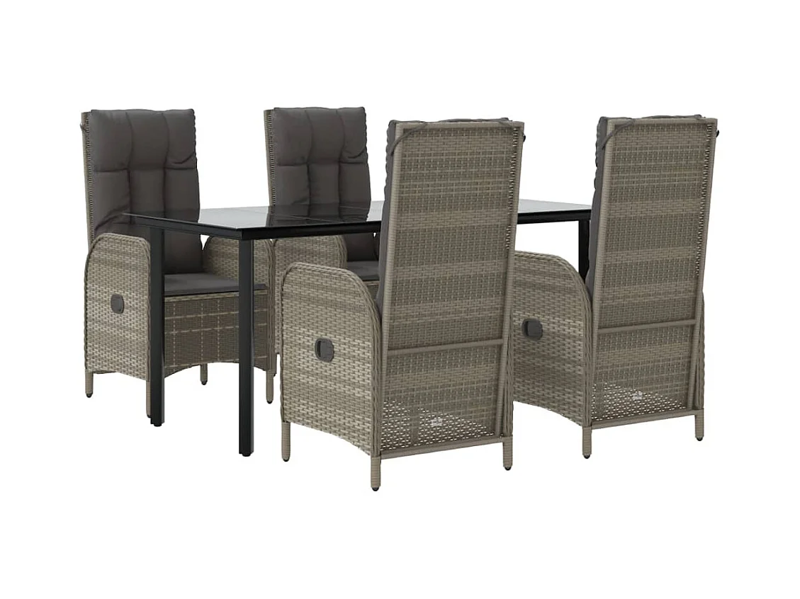 Vernon Ensemble à manger de jardin et coussins 5pcs Gris/noir
