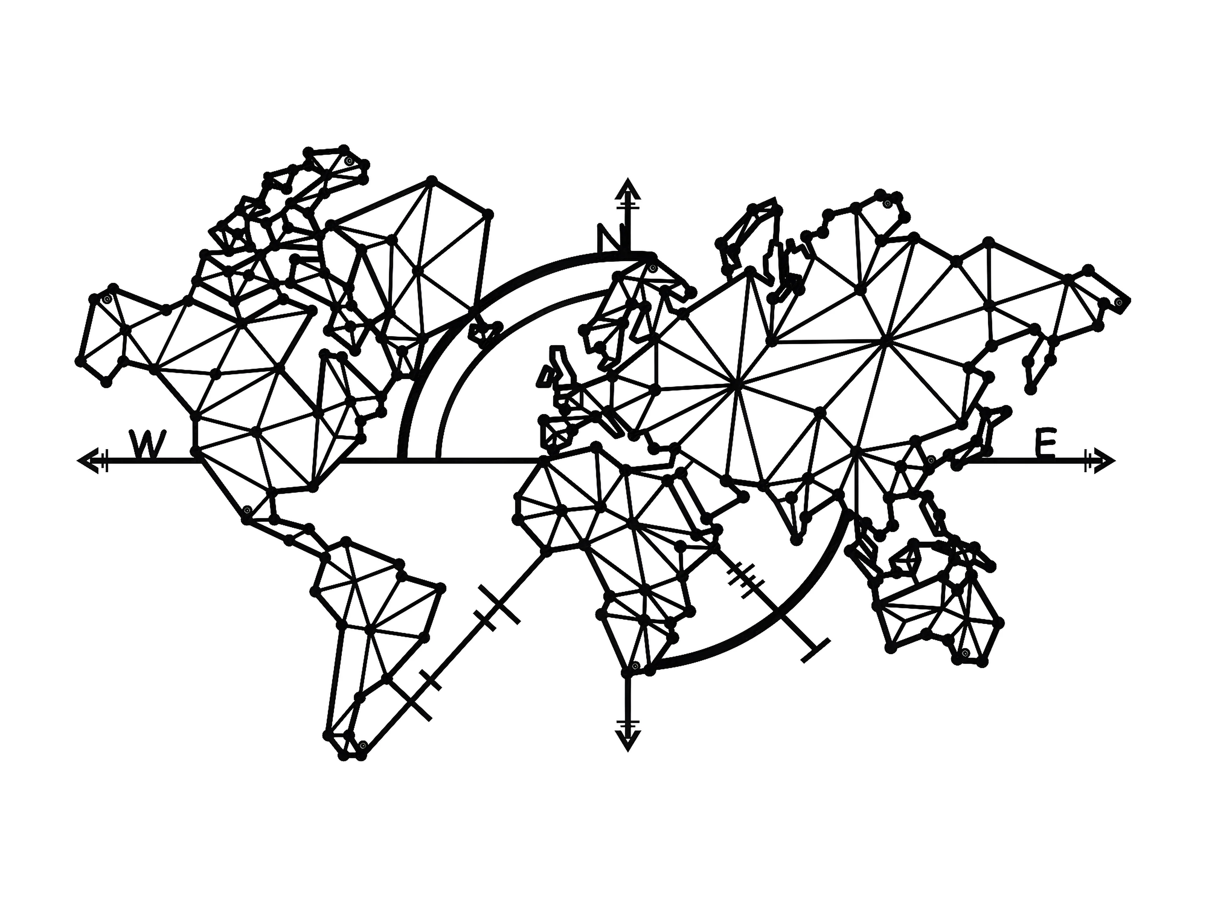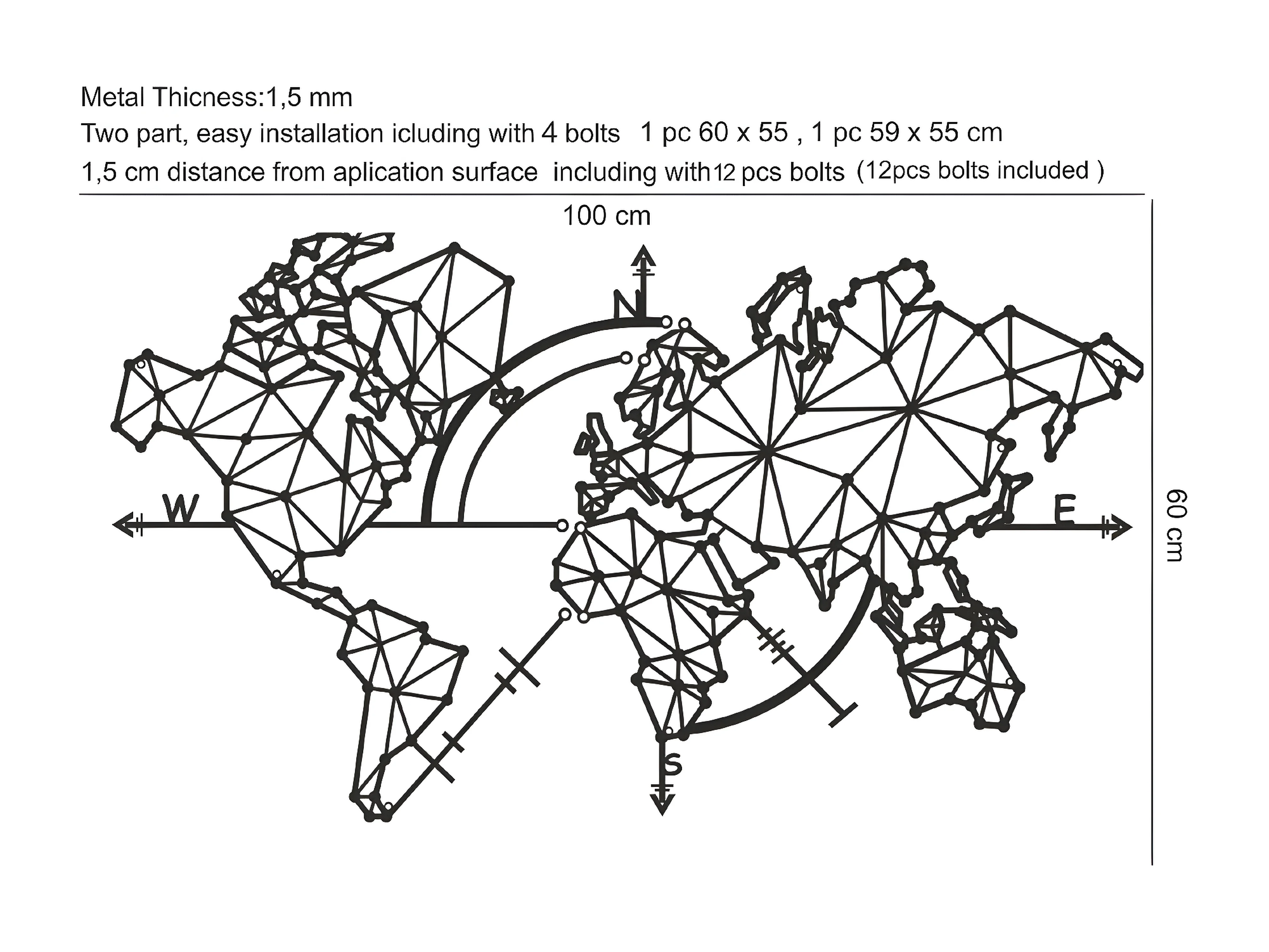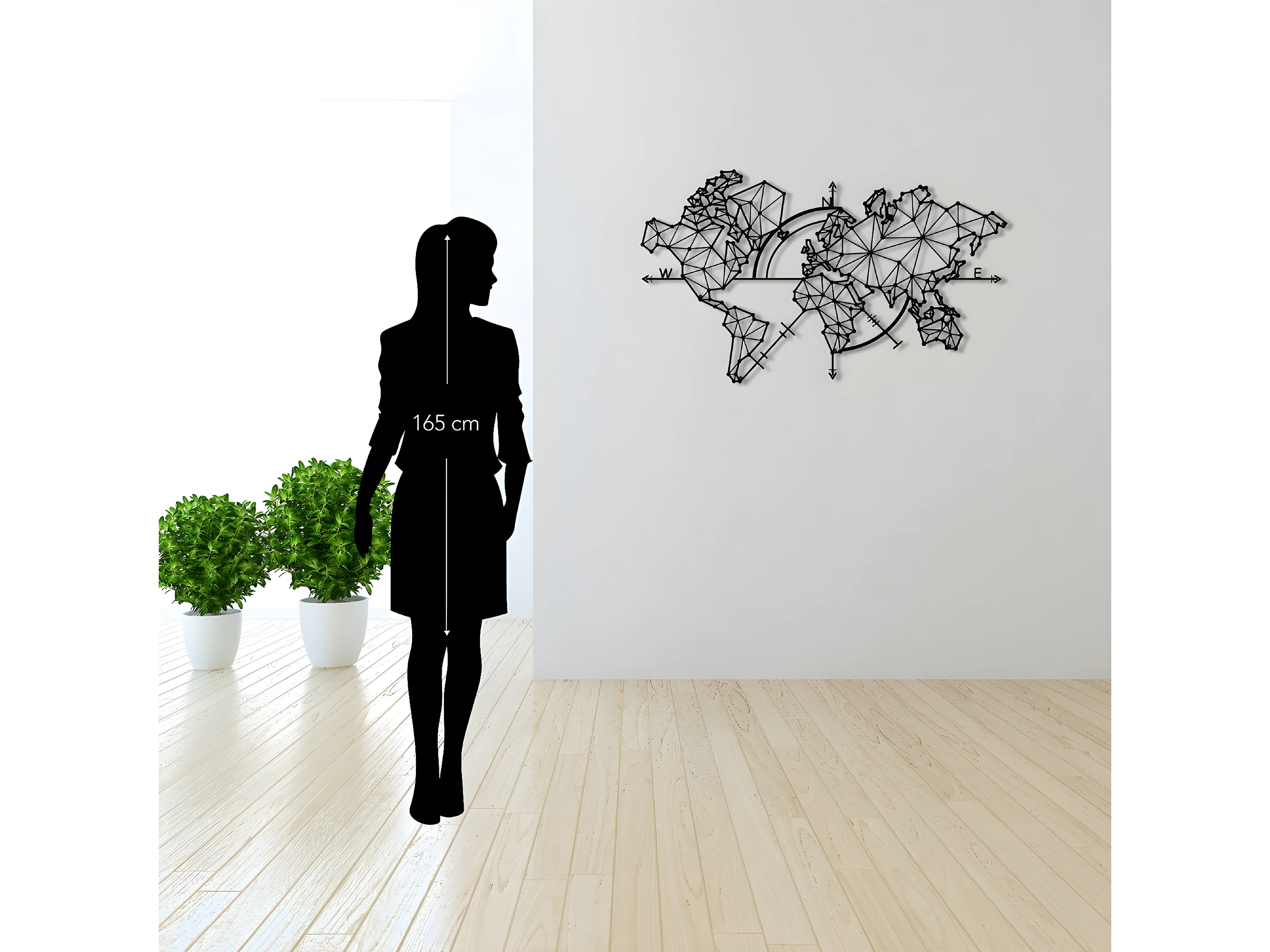 Décoration en Métal Carte du Monde 3, Noir, 100x1,5x60 cm, EPIKASA