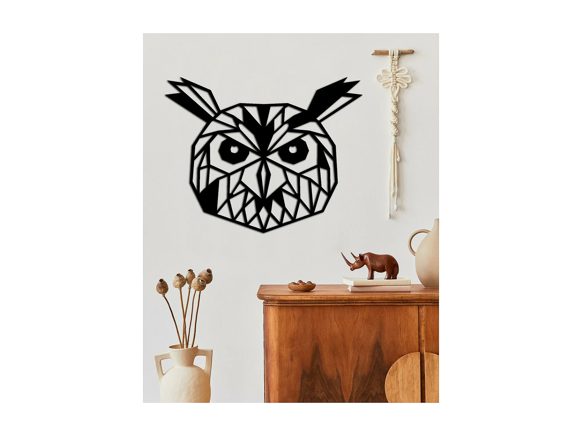 Décoration en Métal Chouette 1, Noir, 40x0,15x32 cm, EPIKASA