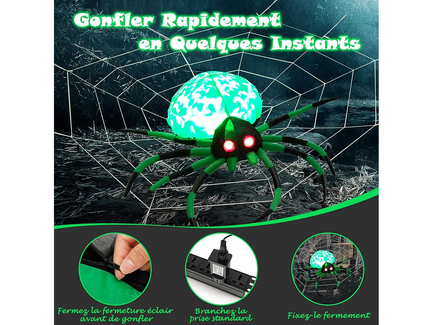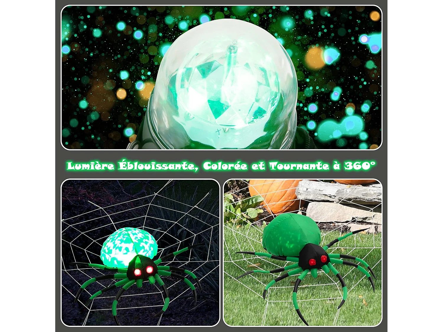 Décoration gonflable d’halloween, araignée aux yeux rouges avec toile d'araignée, avec lampe rotative et gonfleur intégré