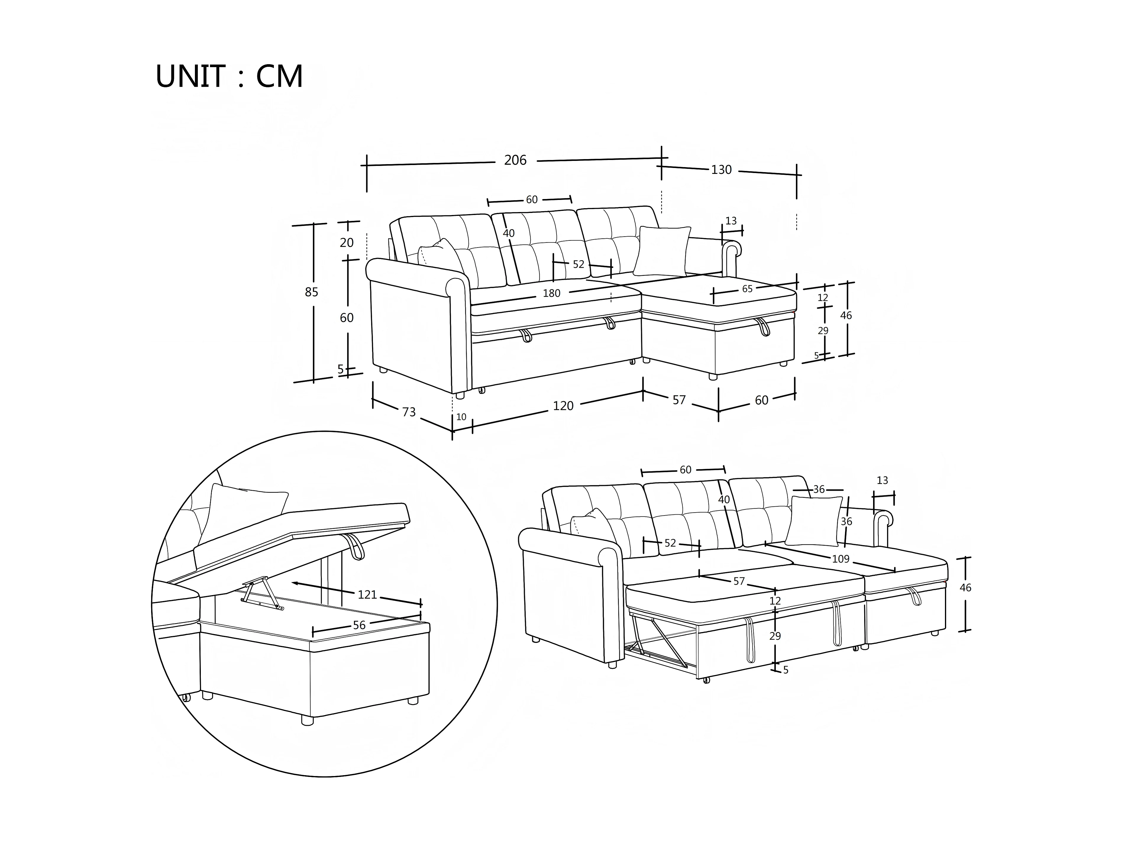 Délice - Canapé en U Convertible 4 Places - Chenille avec Coffre de Rangement et Roulettes - Grand Modèle Idéal Salon & Espace Open
