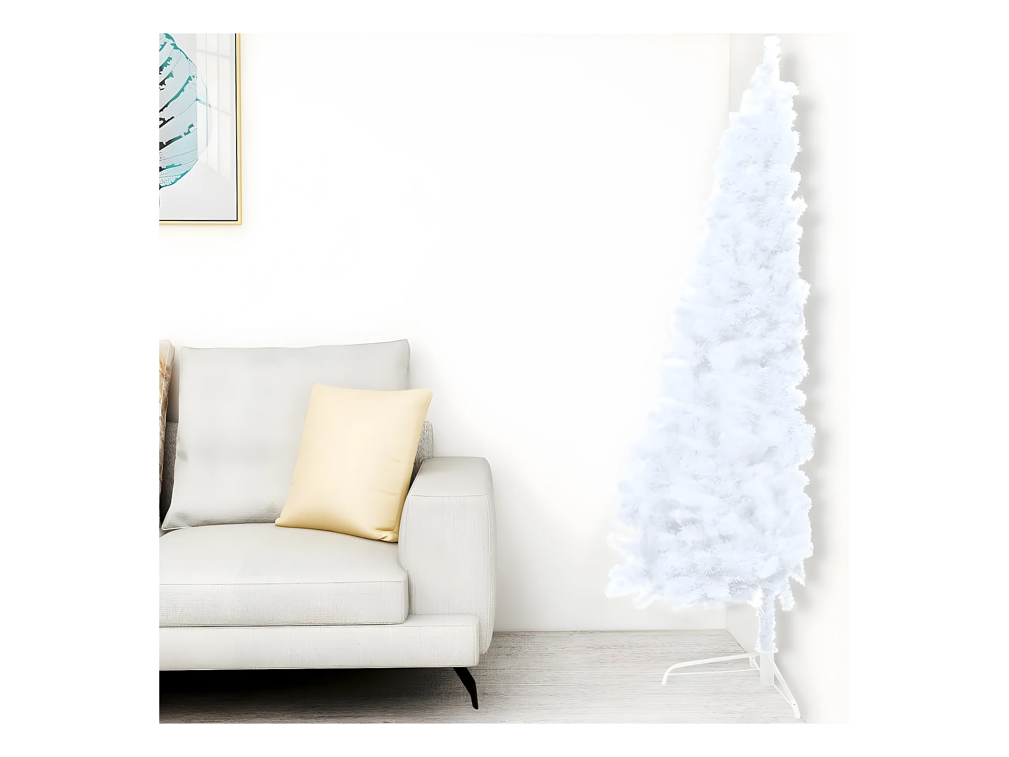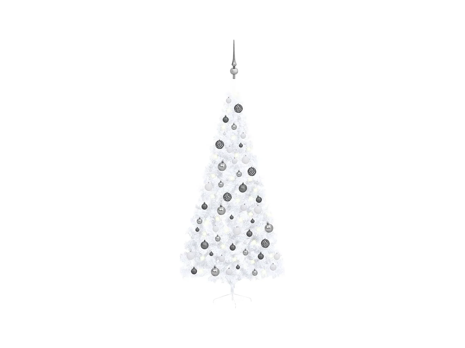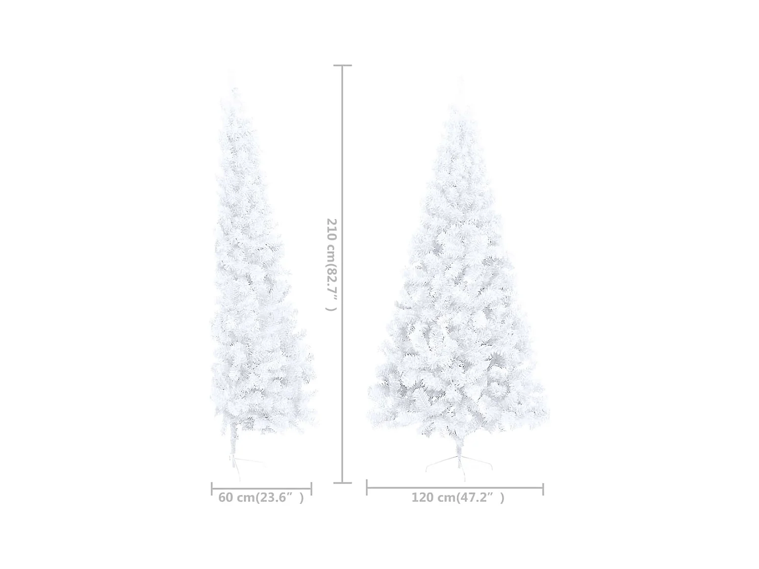 Demi-arbre de No?l artificiel pré-éclairé et boules blanc 210cm