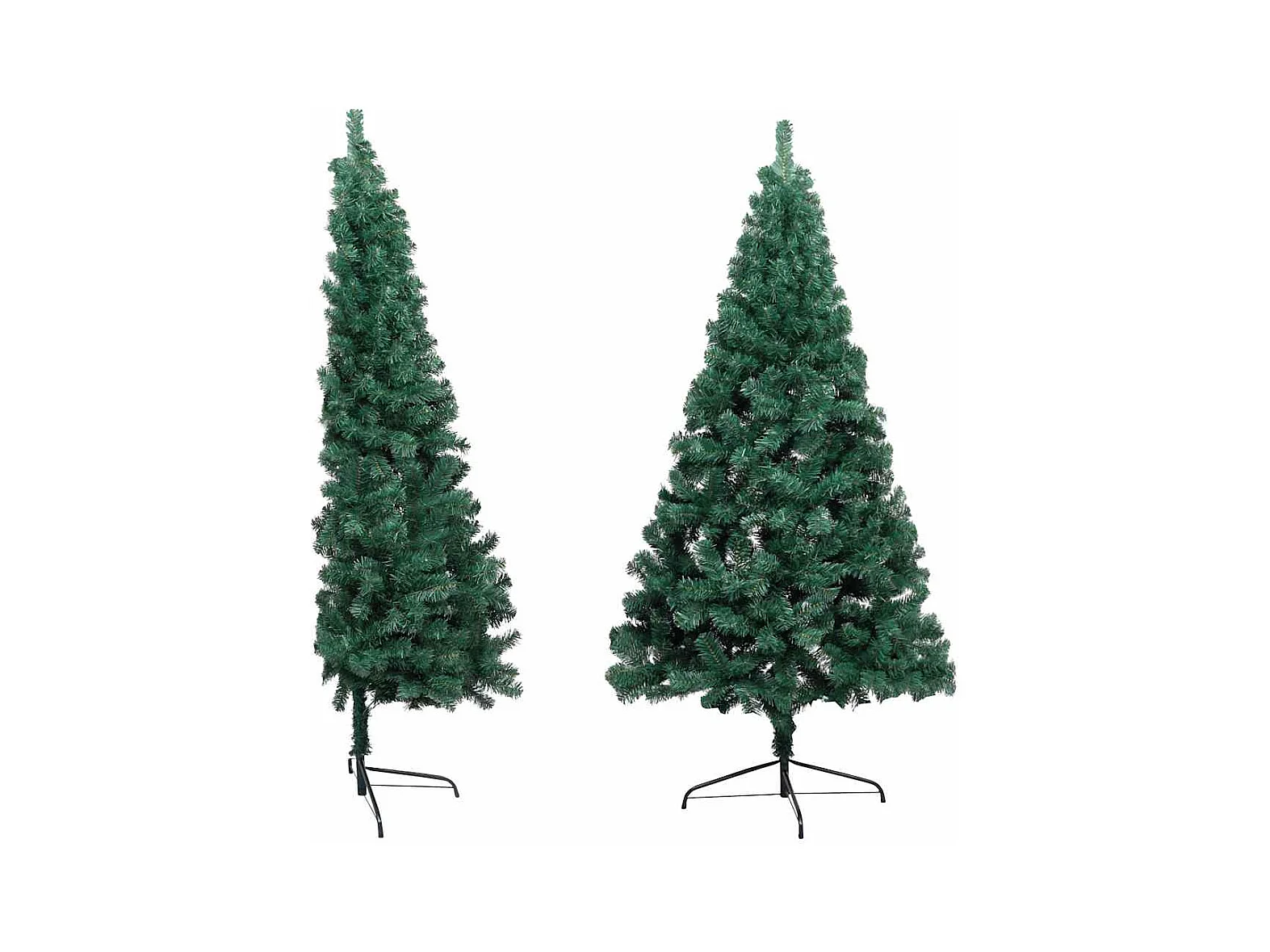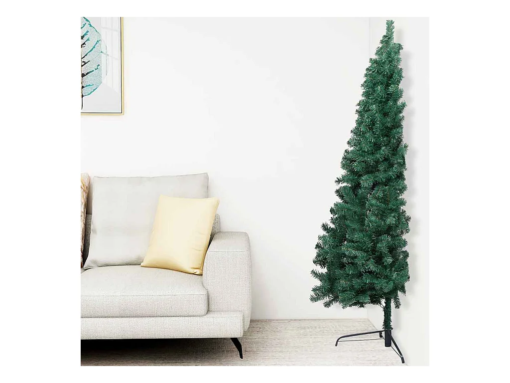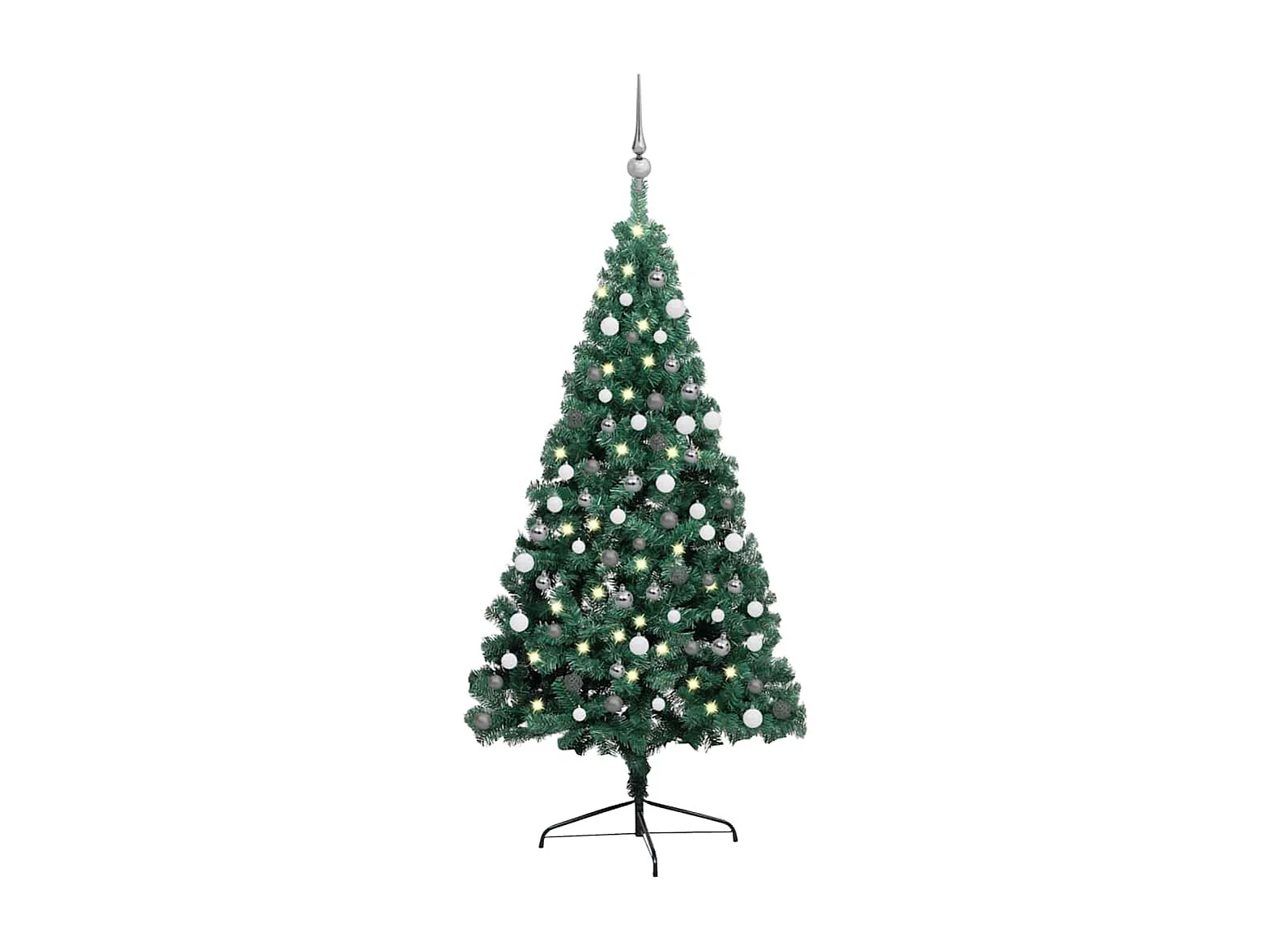 Demi-arbre de Noël artificiel pré-éclairé et boules vert 210 cm