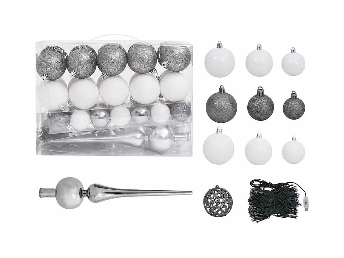 Arbre de Noël artificiel pré-éclairé avec boules vert 210 cm