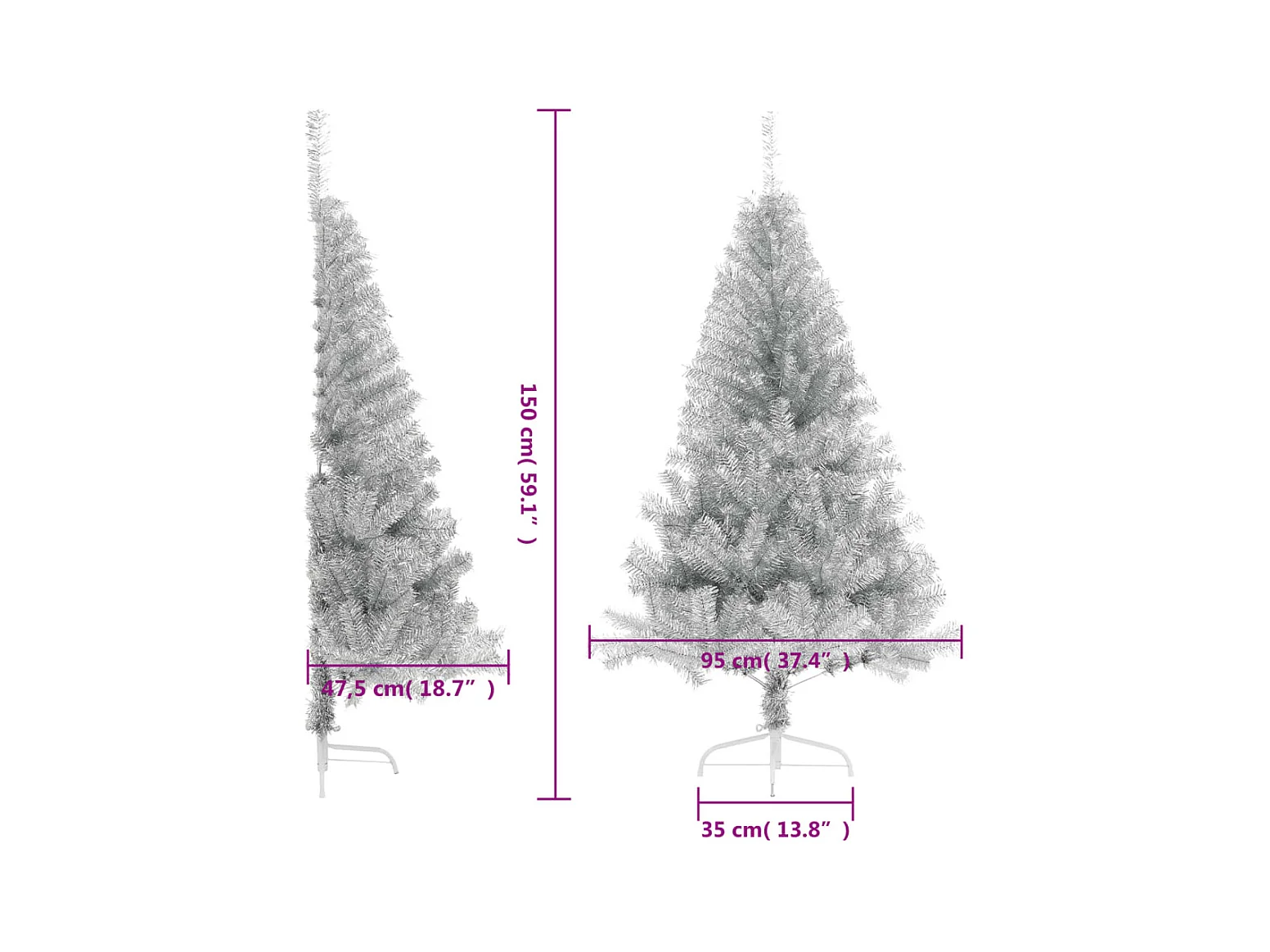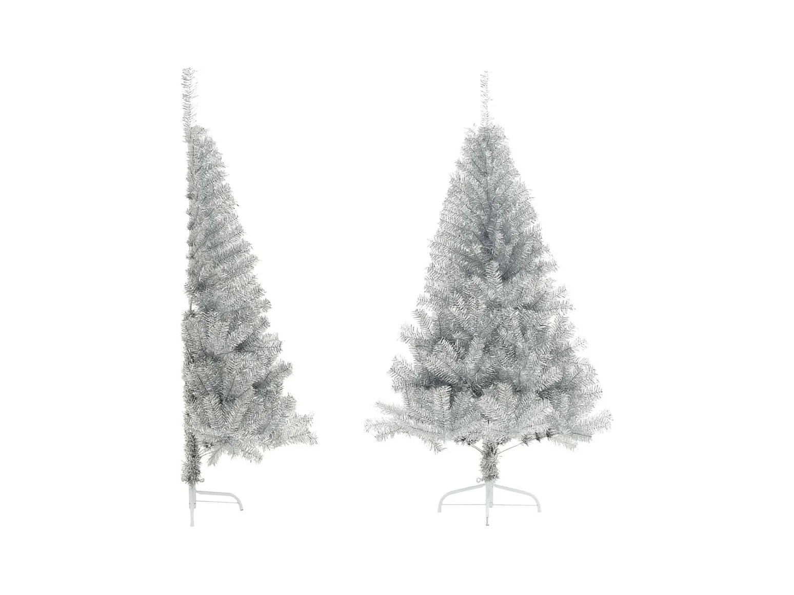 Demi sapin de Noël artificiel avec support argenté 150 cm PET