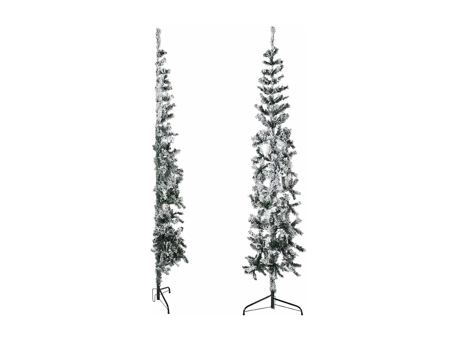Demi sapin de Noël artificiel mince avec neige floquée 240 cm