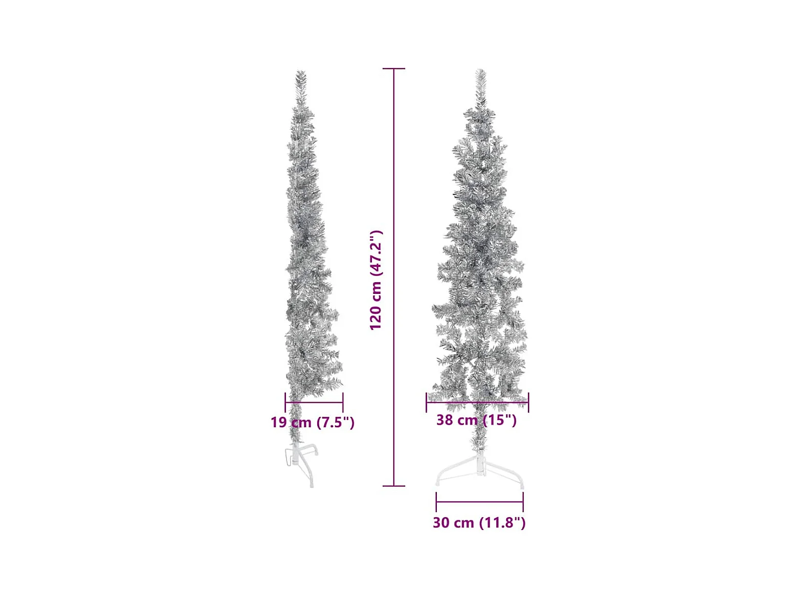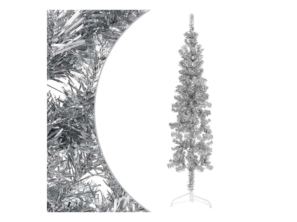 Demi sapin de Noël artificiel mince avec support Argenté 120 cm