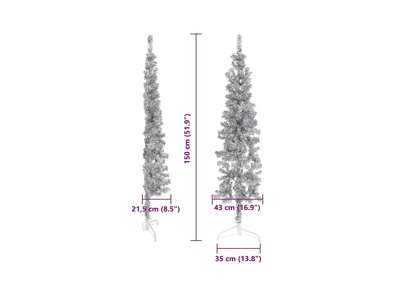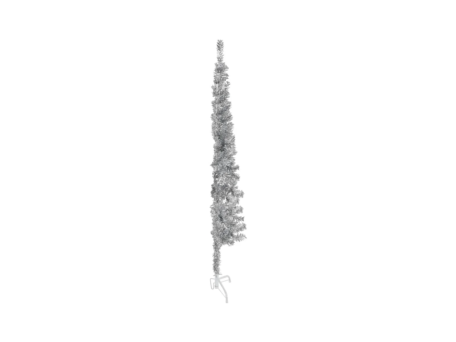 Demi sapin de Noël artificiel mince avec support Argenté 150 cm
