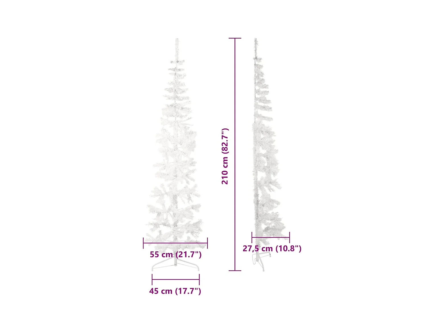 Demi sapin de Noël artificiel mince avec support Blanc 210 cm
