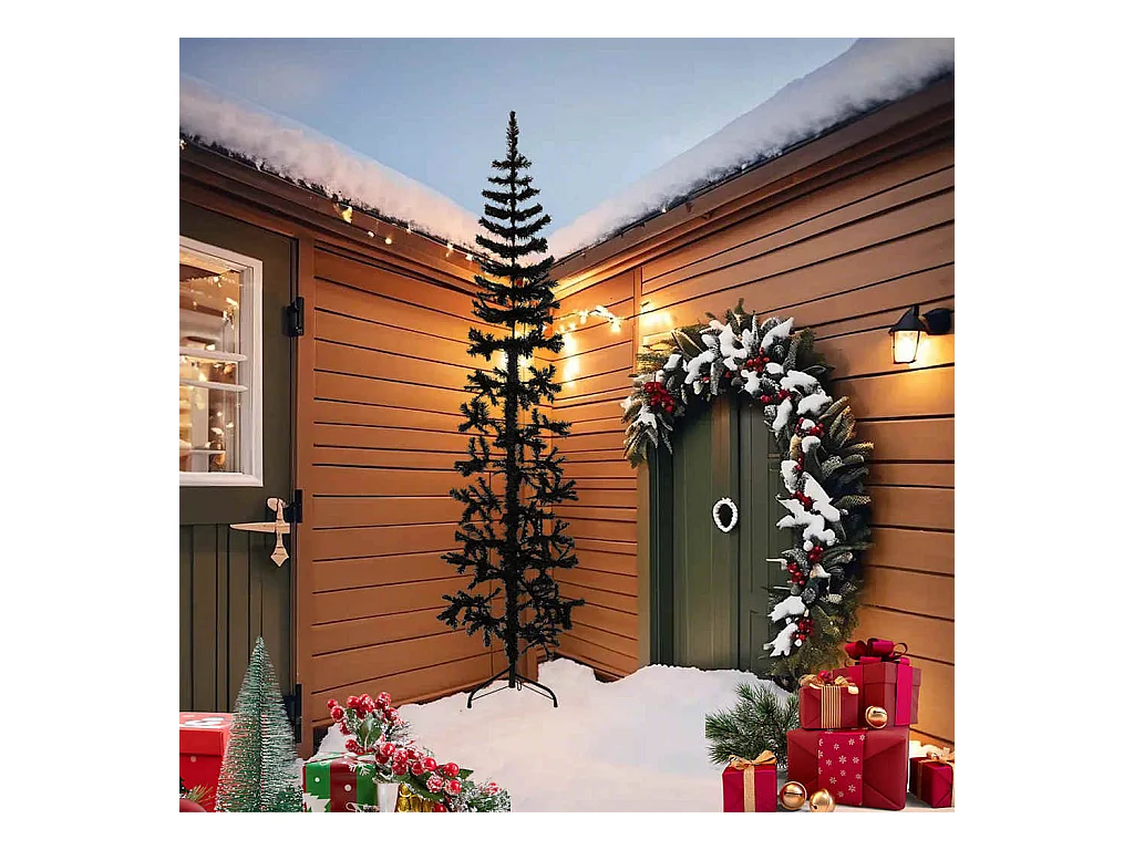 Demi sapin de Noël artificiel mince avec support Noir 240 cm