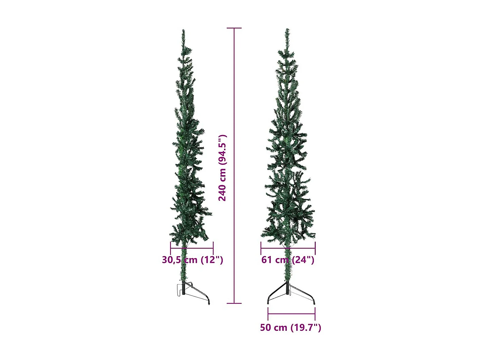 Demi sapin de Noël artificiel mince avec support Vert 240 cm