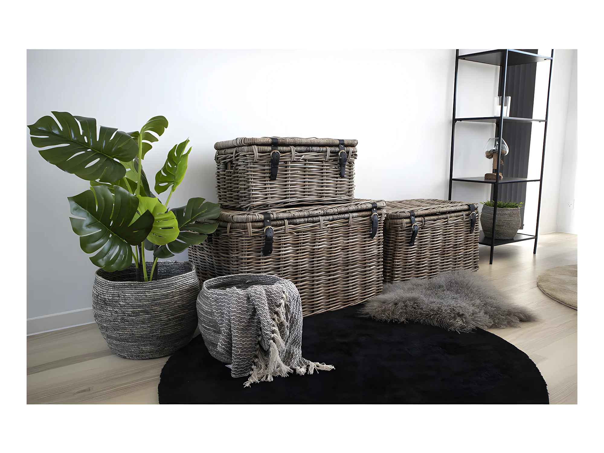 Demsy Boîte de rangement, 3 pièces en kubu gris avec poignée en cuir.