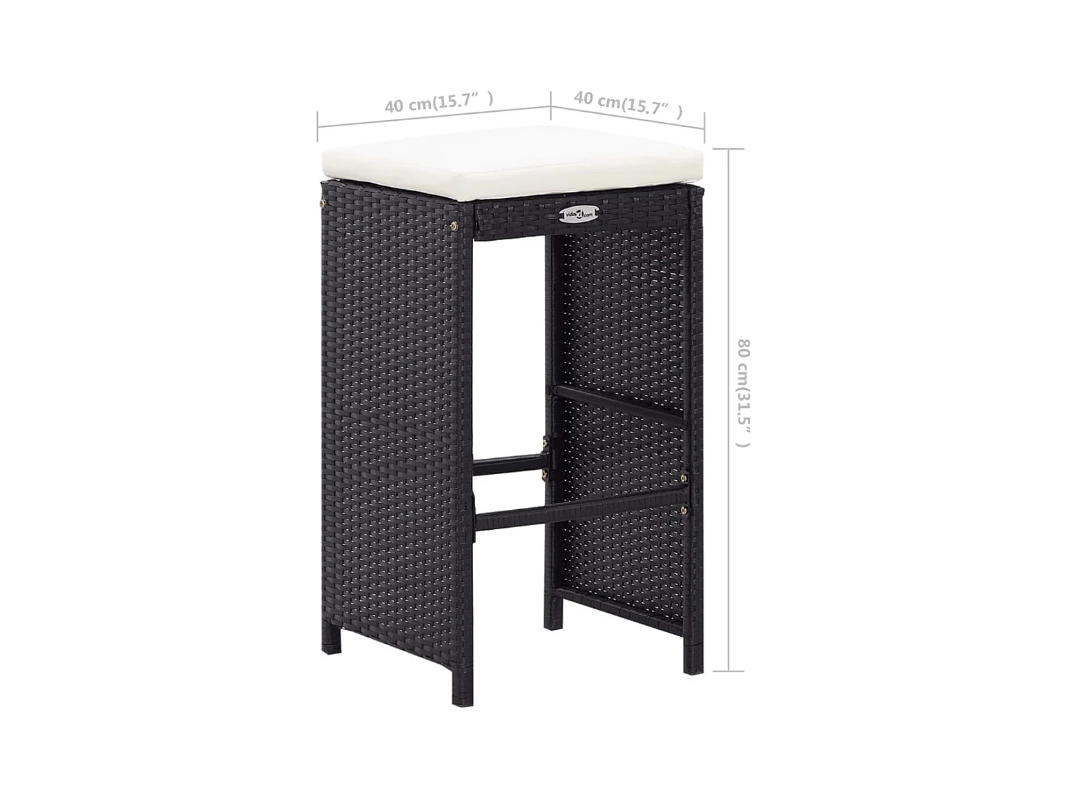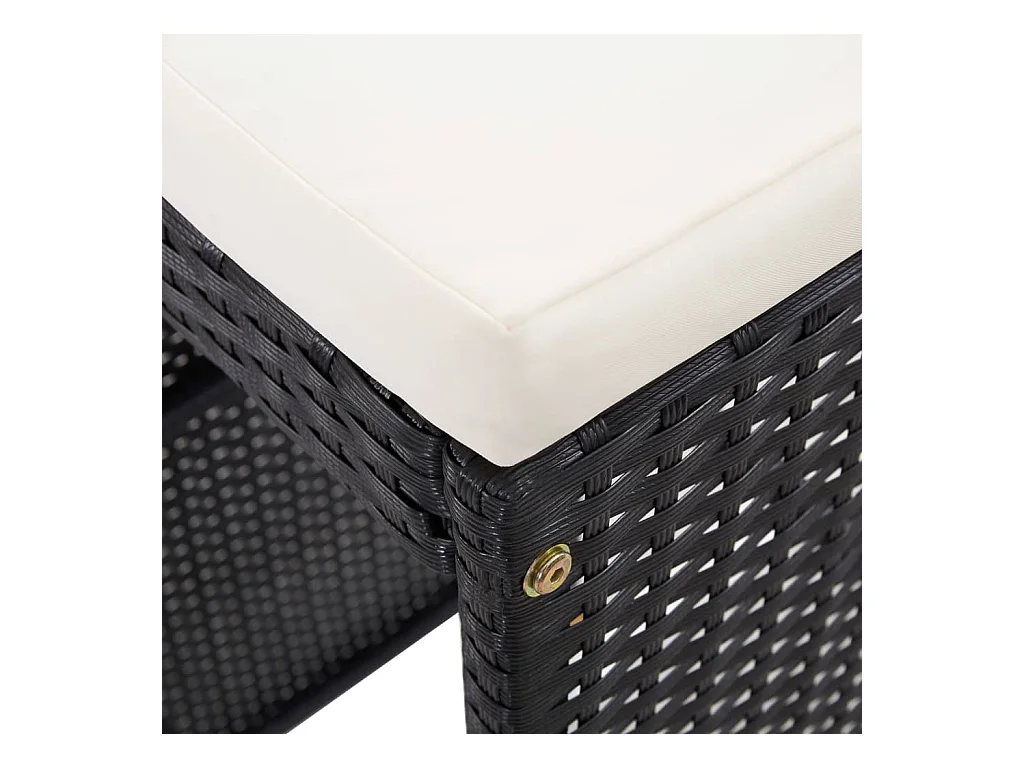 Mary Ensemble de bar de jardin 3 pcs et coussins Résine tressée Noir