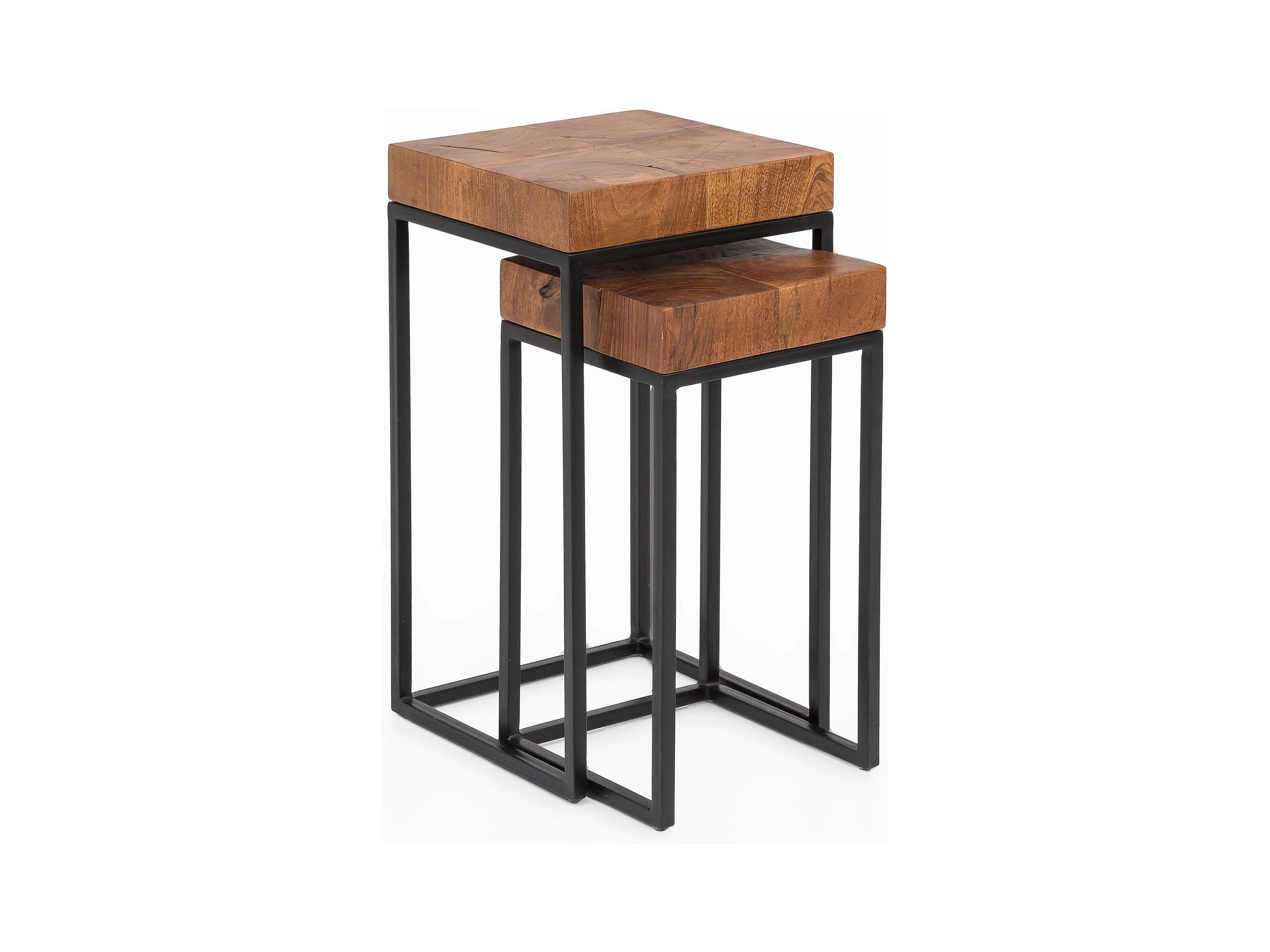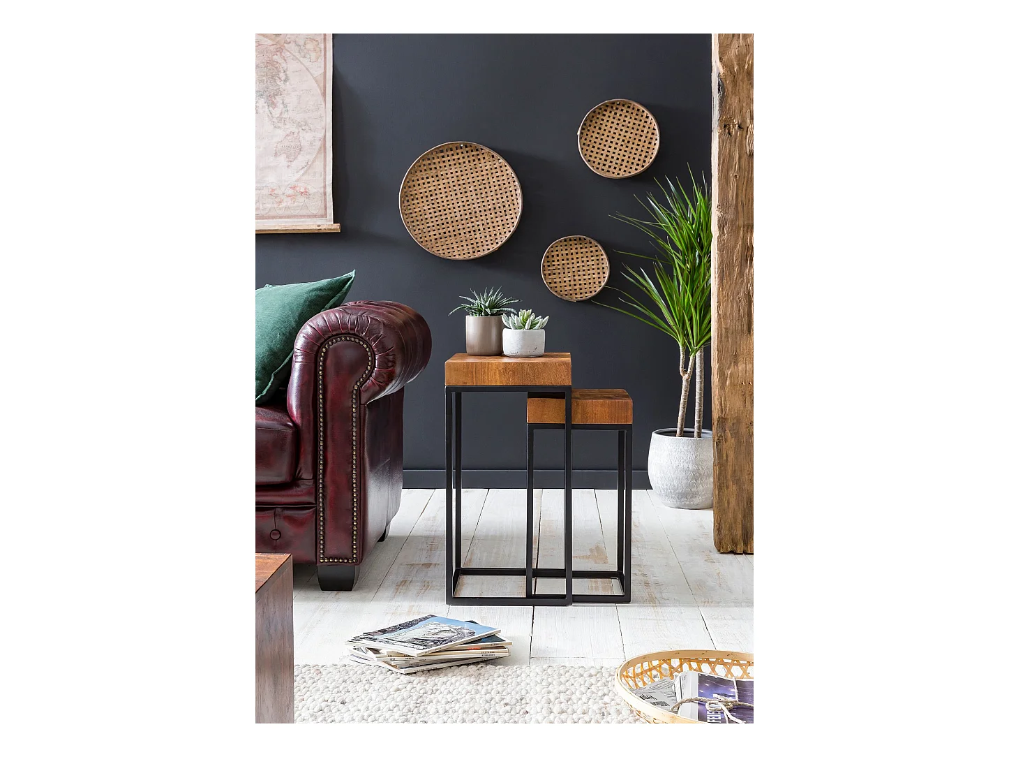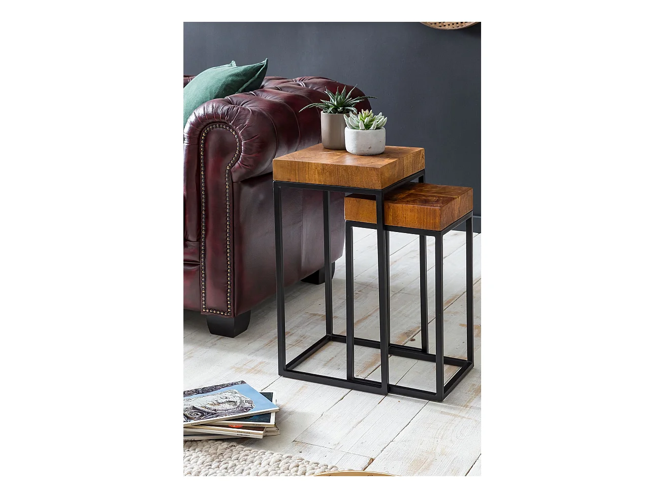 Design bijzettafel WL5.661 Sheesham metalen bijzettafelset, 2 klein | Salontafel Set 2 Houten Tafels | Metalen frame van massief houten salontafel | Salontafel