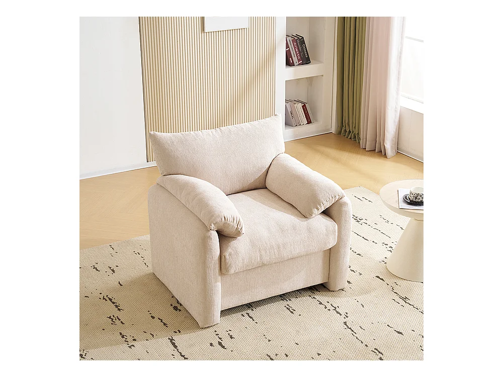 Design moderne, tissu chenille, fauteuil surdimensionné, chaise décorative, canapé simple, beige