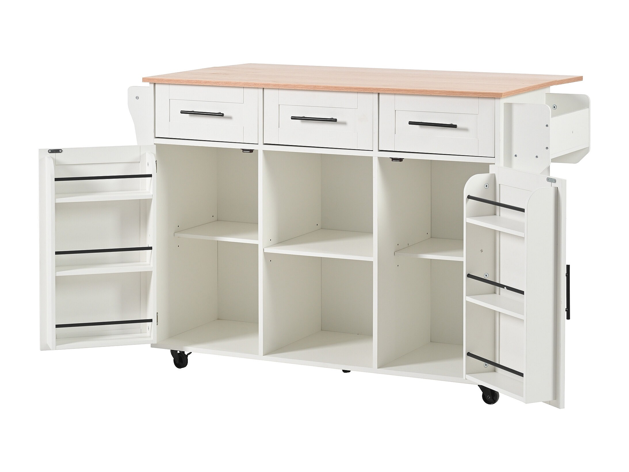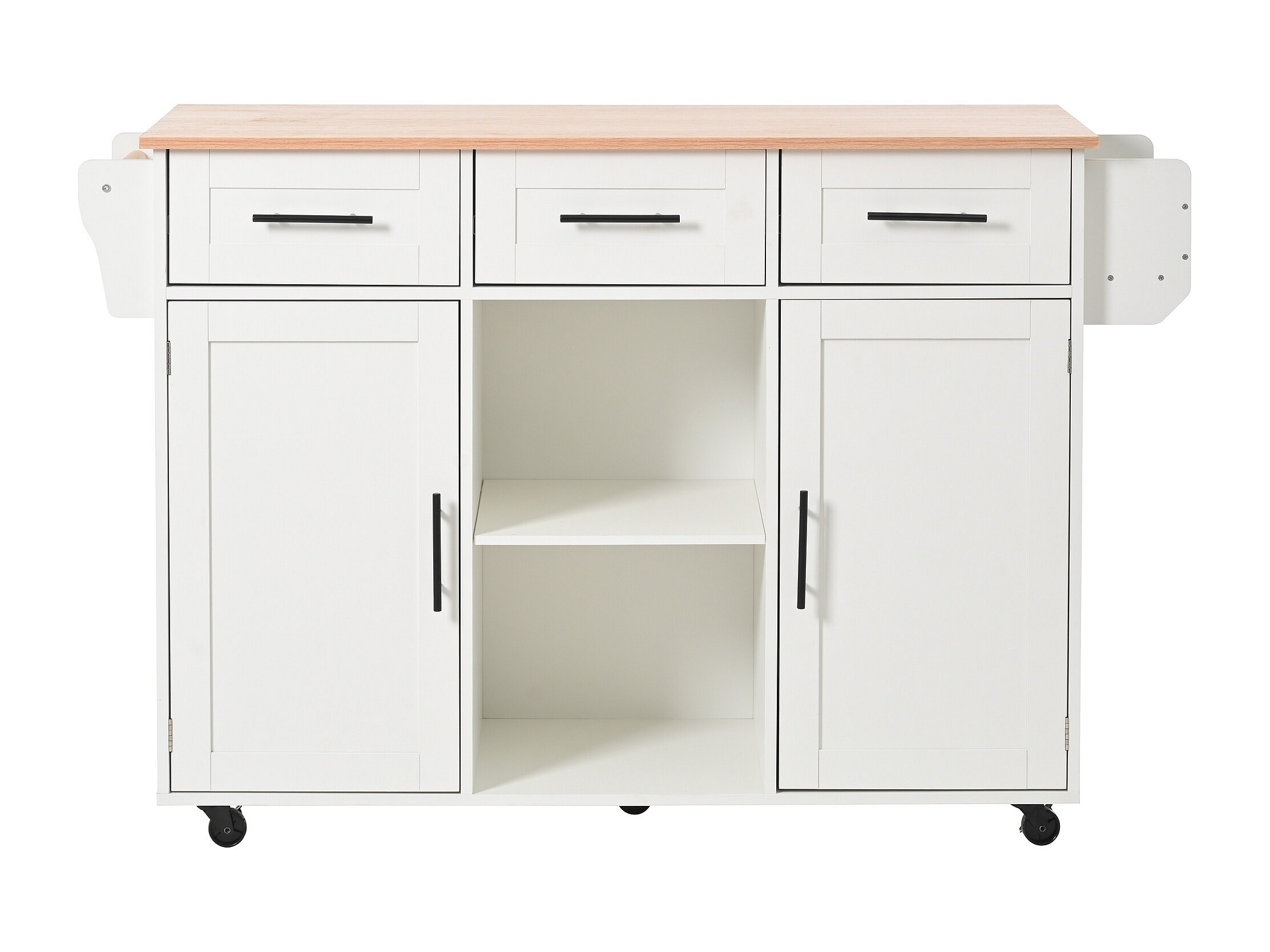 Desserte blanche avec plateau en bois, 3 tiroirs et 2 portes - pour salle à manger et cuisine