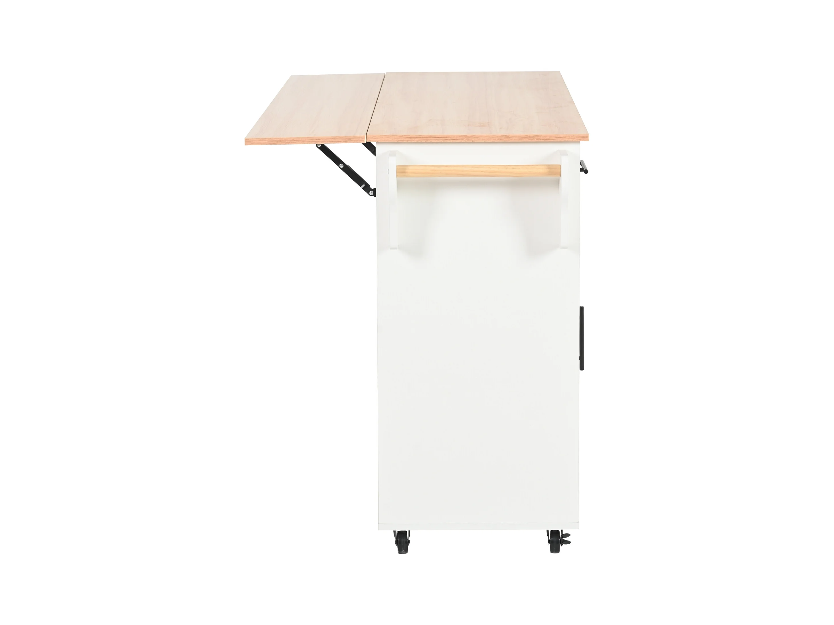 Îlot central mobile avec plateau rabattable, 3 portes et 2 tiroirs de rangement - Blanc