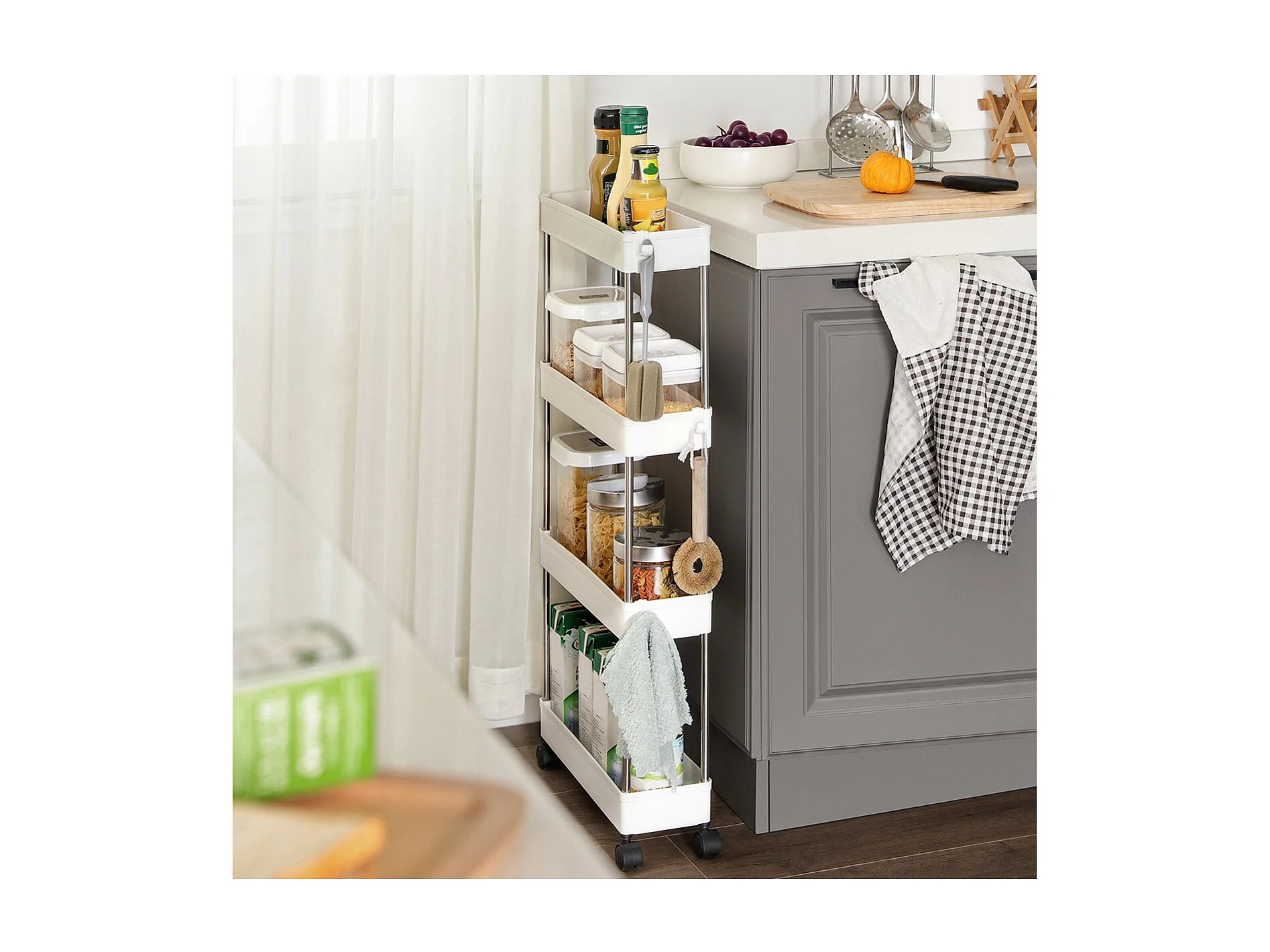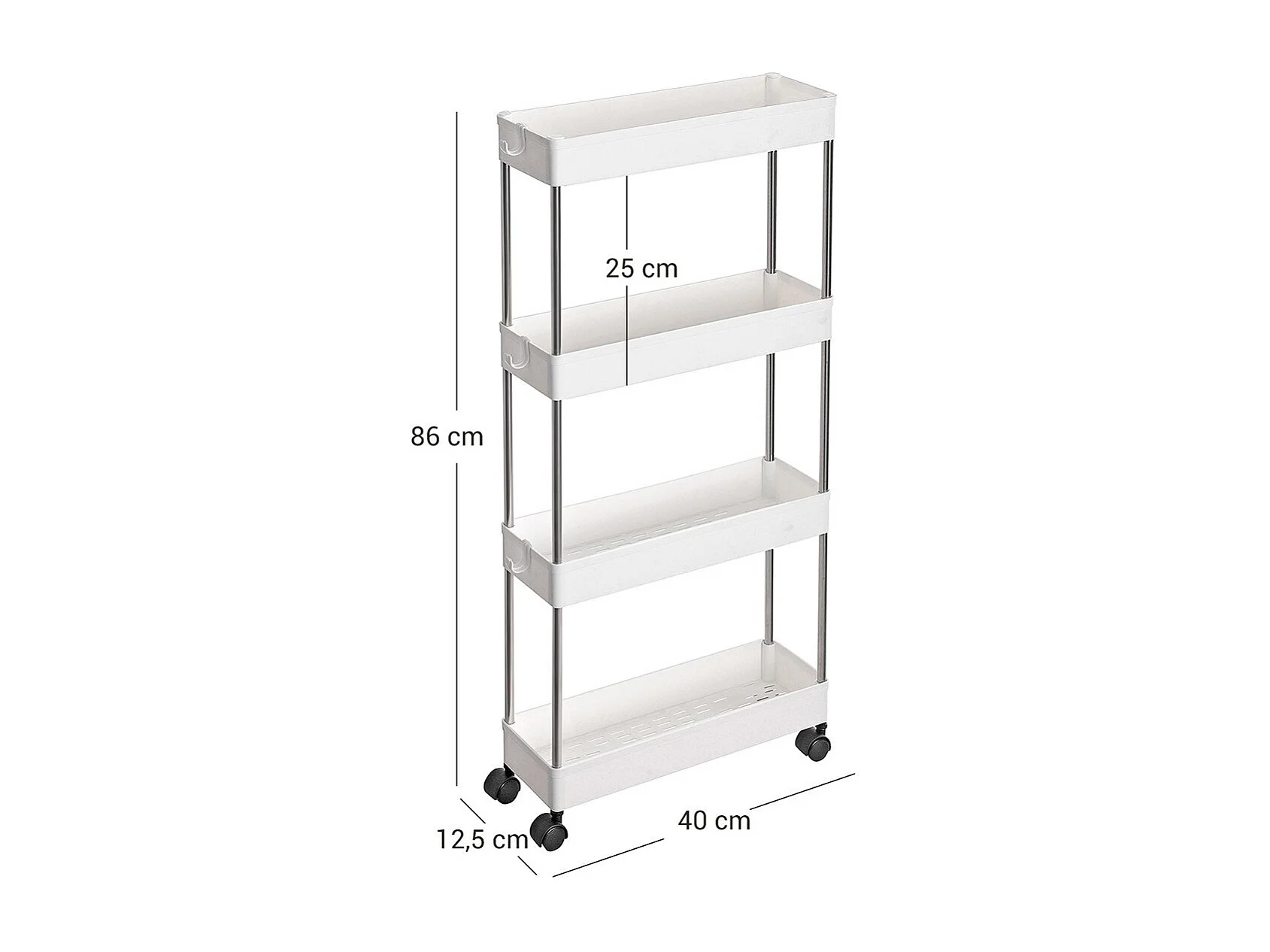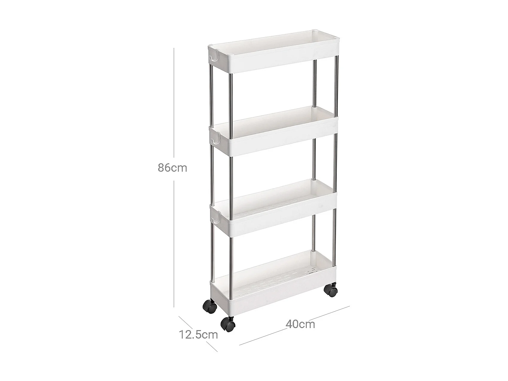 Desserte blanche sur roulettes à 4 niveaux - L12,5 x H86 cm