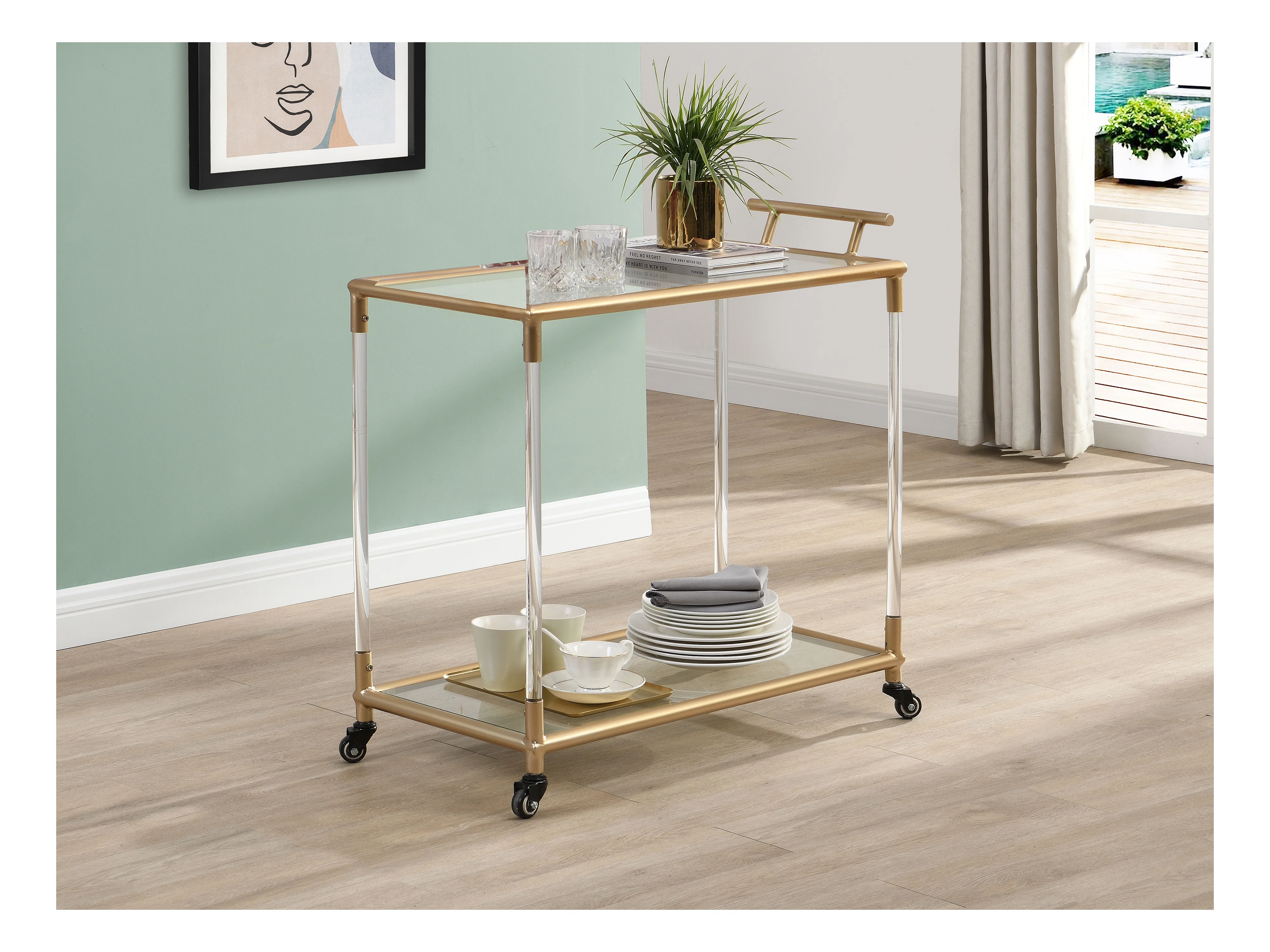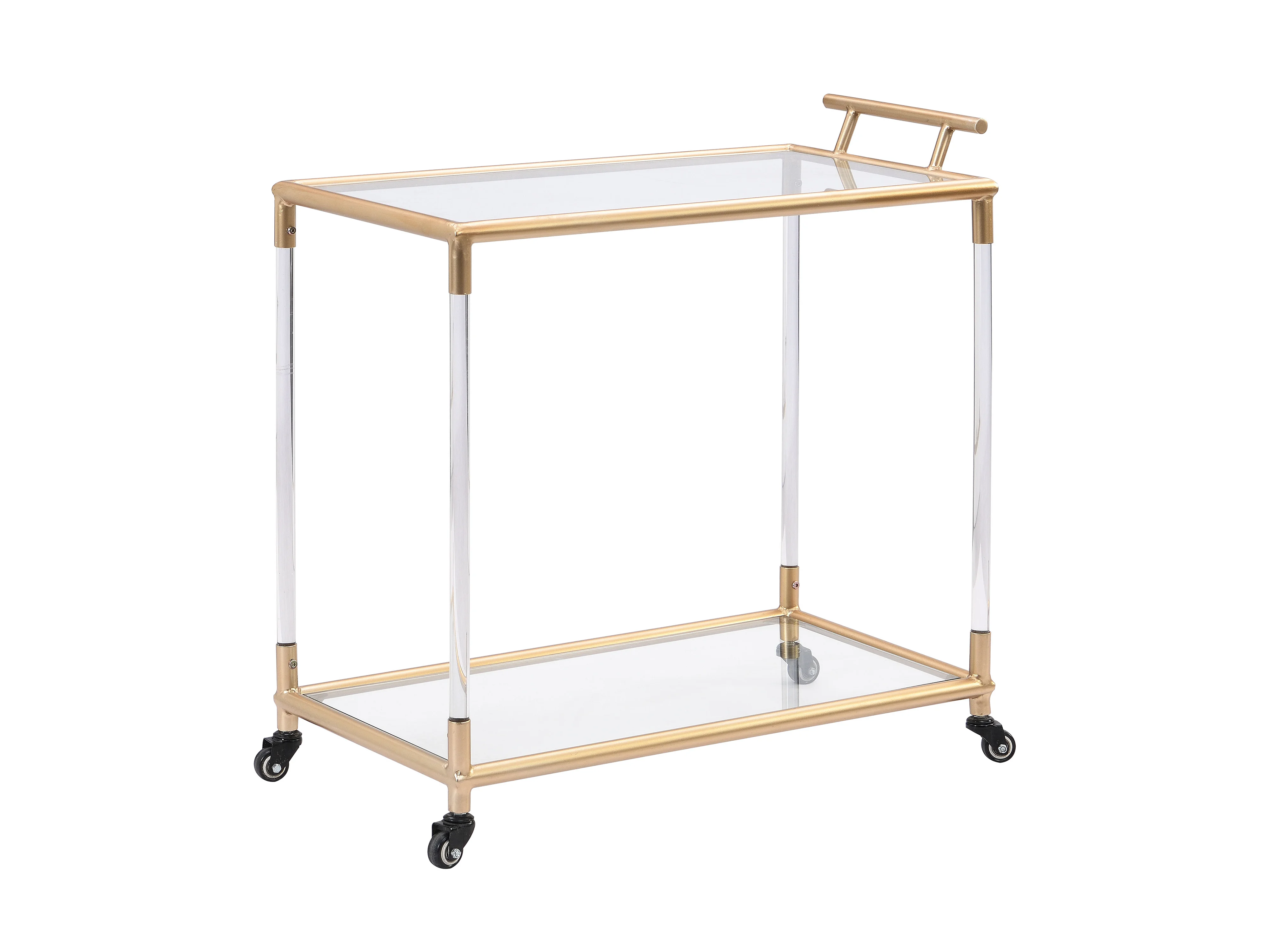 Desserte de cuisine à roulettes double plateau en verre trempé et métal - Transparent et doré - ORULA
